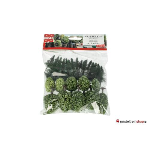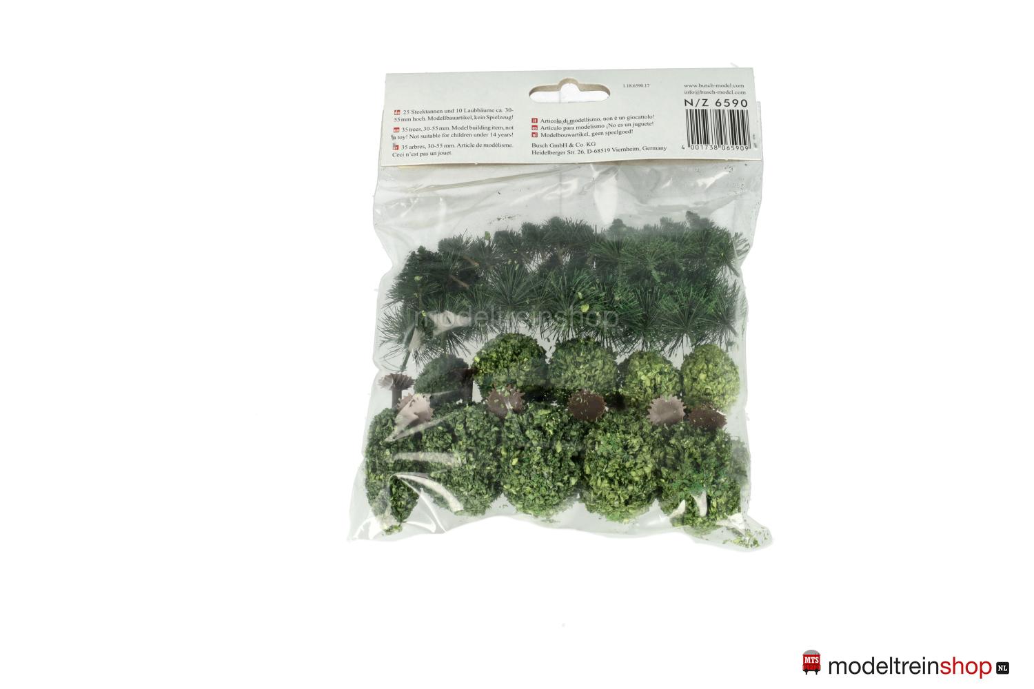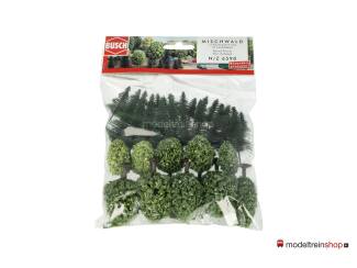 Met 35 bomen: 10 loofbomen 35-55 mm hoog en 25 sparrenbomen 30-50 mm hoog.