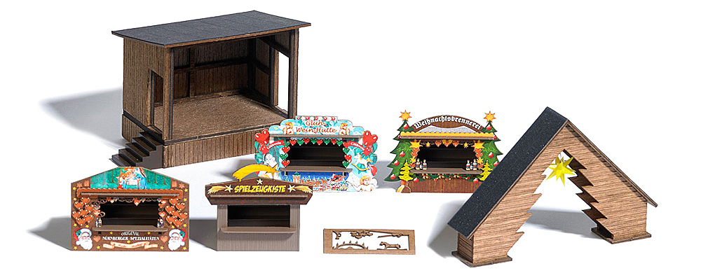 Bouwpakket voor een sfeervolle kerstmarkt met toegangshek, overdekt