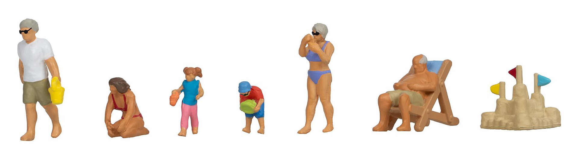| Inhoud: | 6 figuren, ligbed, zandkasteel |