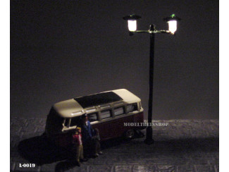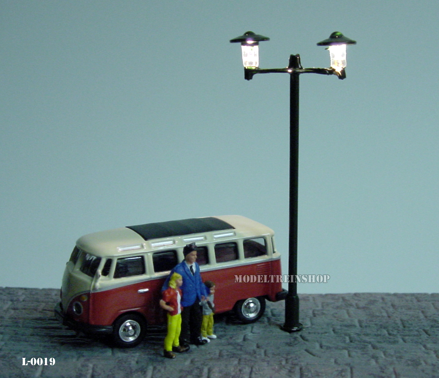Auto en figuren op de foto’s zijn in de schaal HO en zijn ter indicatie van de grote ten opzichte van de verlichting, auto en figuren worden niet meegeleverd.