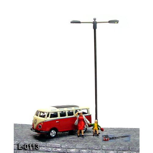 Auto en figuren op de foto’s zijn in de schaal HO en zijn ter indicatie van de grote ten opzichte van de verlichting, auto en figuren worden niet meegeleverd.