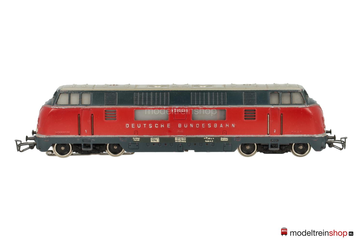 erhabene Betriebs-Nr.: V 200 027, große erhabene DB-Embleme an den Längsseiten, kleine erhabene DB-Embleme an den Stirnseiten, ohne “Märklin”-Embleme, Rahmenbeschriftung = Schiebebilder