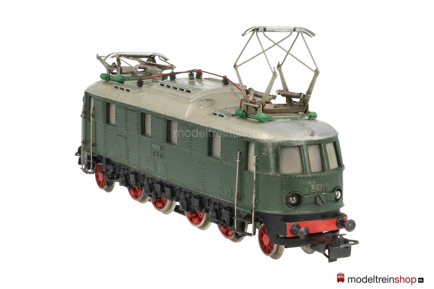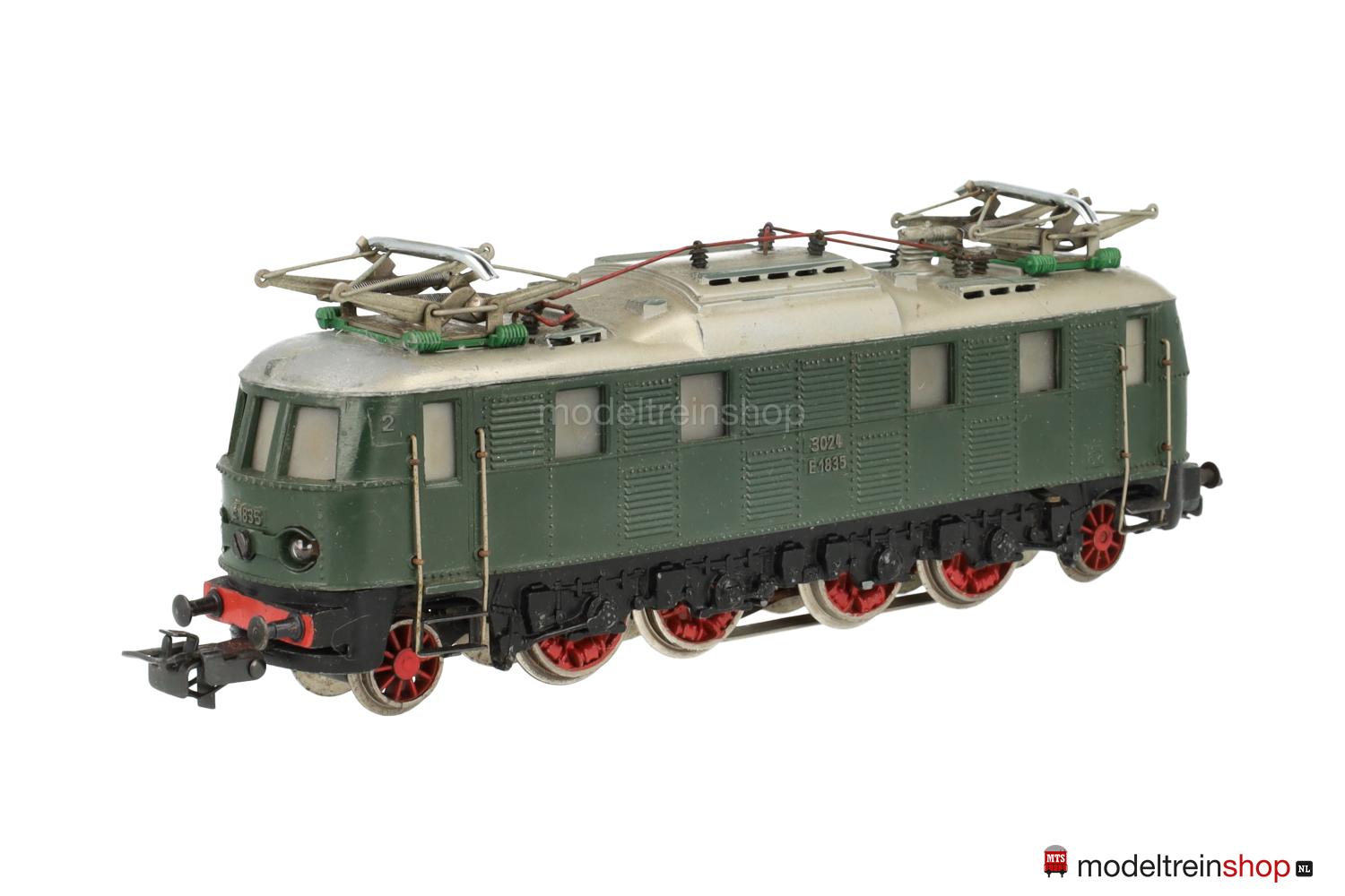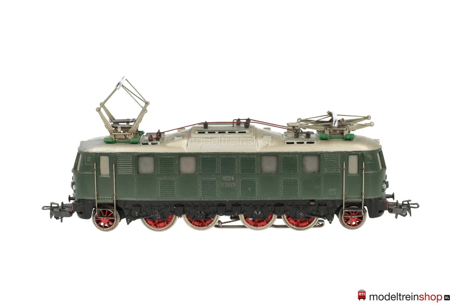Achsfolge 1′ Do 1′. Schwarzes Gußfahrgestell, zwei angetriebene Achsen, schwarzes Fahrwerk. Grünes Gußgehäuse mit erhabenen Aufschriften: “MÄRKLIN” / “MÄRKLIN”-Embleme / “3024” / Führerstandskennzeichnungen “1” und “2” sowie Betriebs-Nr.: E 1835. Fenster mit Cellonscheiben hinterlegt, angesetzte Griffstangen und Trittstufen. Zweilicht-Spitzensignal beidseitig, Lichtwechsel mit Fahrtrichtungsänderung.