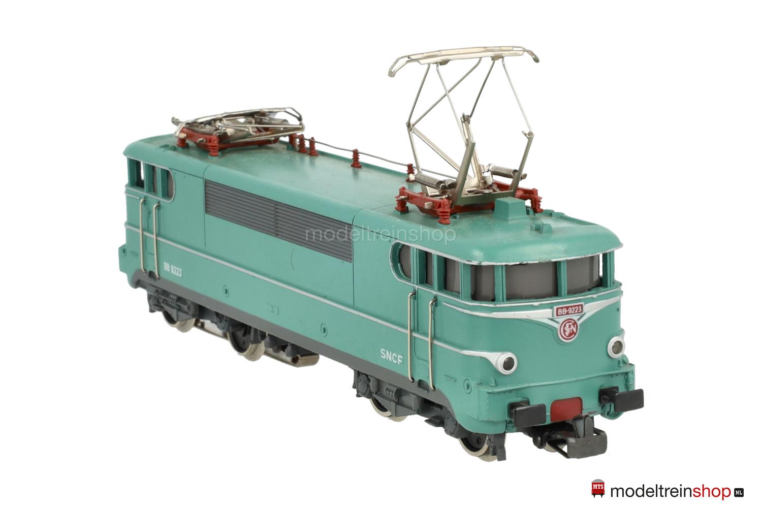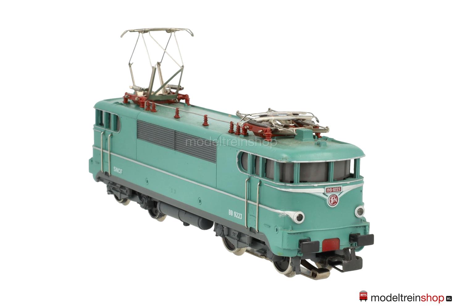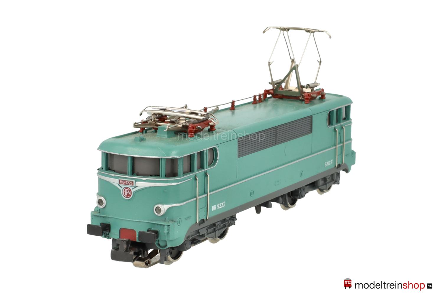 Erhabene silberfarbene Aufschriften, an den Stirnseiten SNCF-Embleme rot unterlegt, Betriebs-Nr.: 9223 grün unterlegt, vernickelte Dachleitungen, einteilige Lüfterreihen.