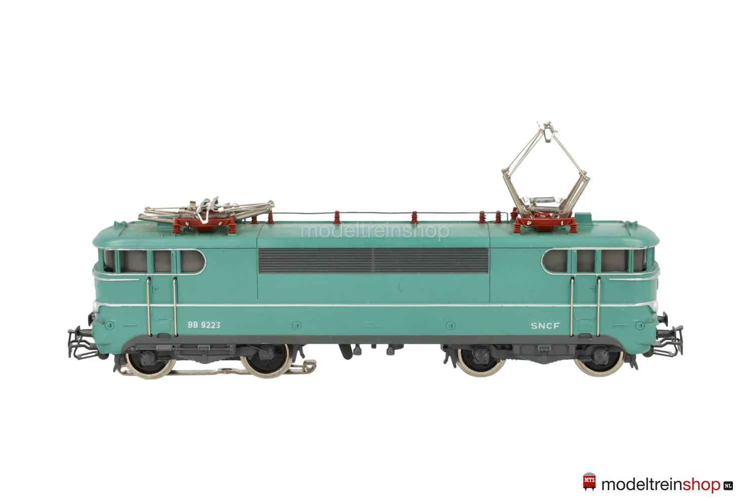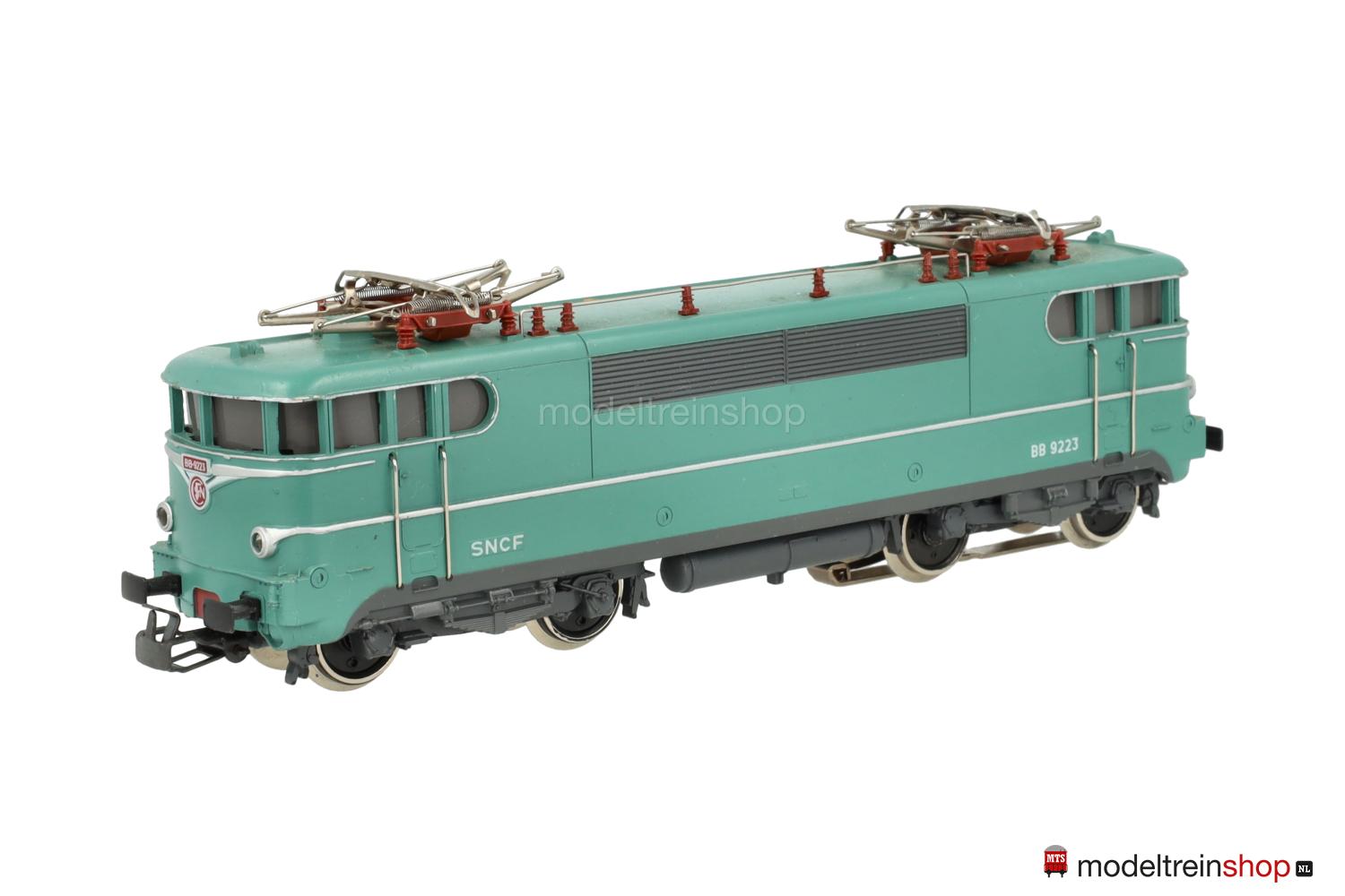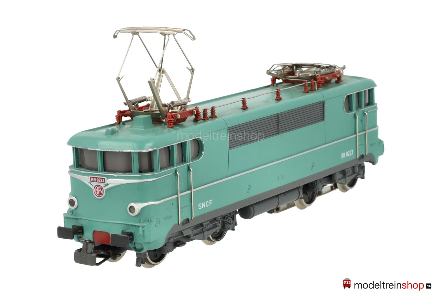 Erhabene silberfarbene Aufschriften, an den Stirnseiten SNCF-Embleme rot unterlegt, Betriebs-Nr.: 9223 grün unterlegt, vernickelte Dachleitungen, einteilige Lüfterreihen.