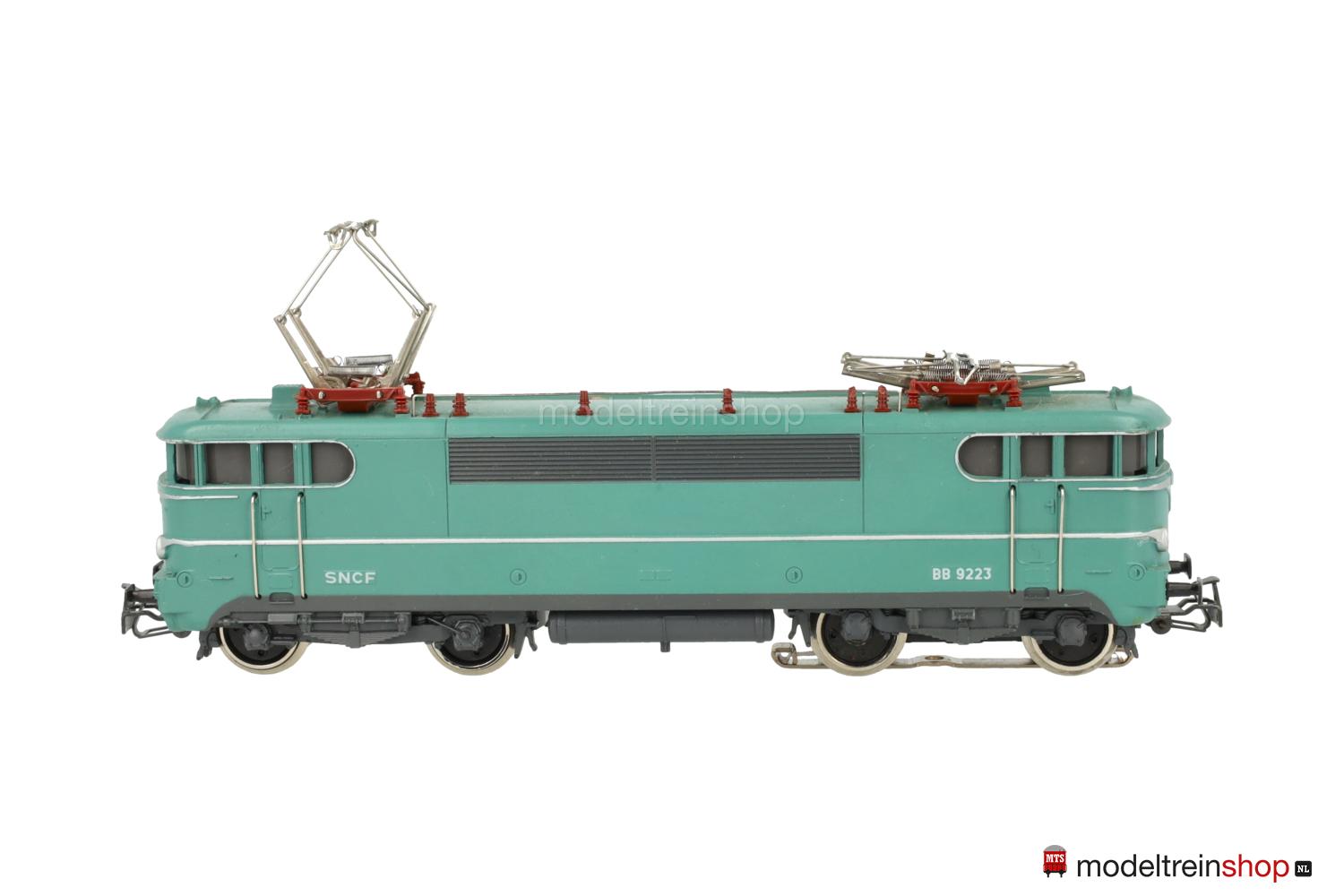 Achsfolge Bo’ Bo’. Fahrgestell = Blechrahmen, ein angetriebenes Drehgestell, graues Fahrwerk. Türkisfarbenes Gußgehäuse mit grauem Rahmen, Fenstereinfassungen und Zierstreifen silberfarben, Betriebs-Nr.: BB 9223, Fenster mit Cellonscheiben hinterlegt, angesetzte Griffstangen. Zweilicht-Spitzensignal beidseitig.