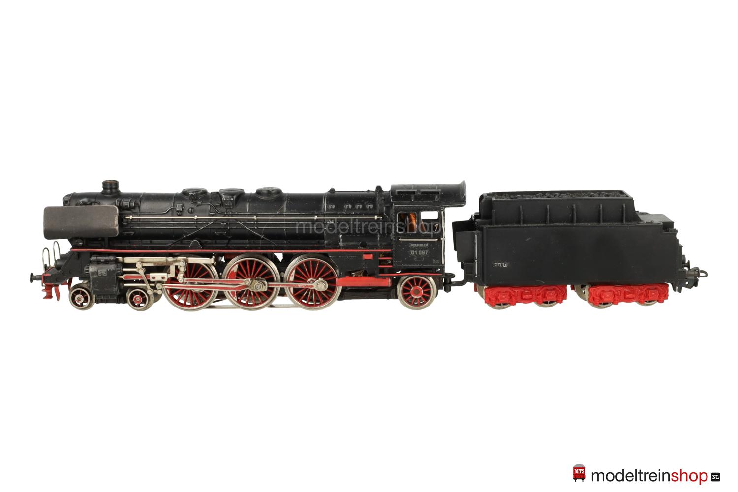 Model van de bouwserie 01 van de Deutsche Bundesbahn (DB) met de asindeling 2 C1, 3 assig, 3 assen aangedreven, 2 antislipbanden ter verhoging van de trekkracht. Weergave van de Heusinger schuifbeweging. Afstandsbediening voor het vooruit- en achteruitrijden doormiddel van een Marklin transformator. 3 verlichte koplampen. Metalen bovenbouw, onderstel van zinkpersgietwerk. Aan tender automatische koppeling met voorontkoppeling (relex).