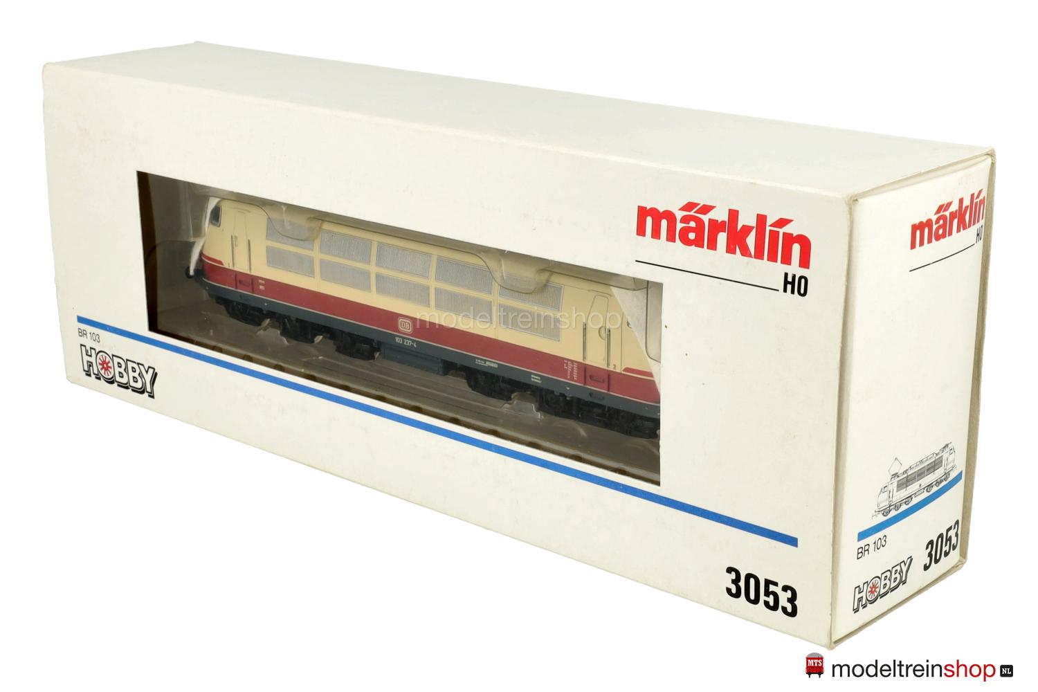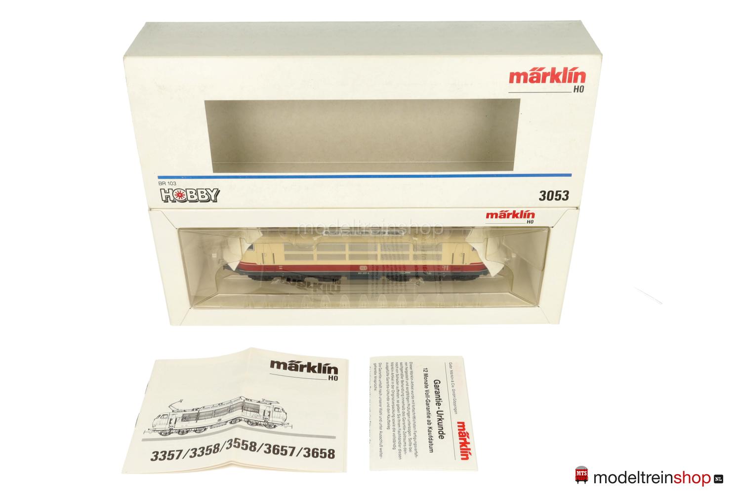 Dit is momenteel de meest elegante, sterkste en snelste elektrische locomotief voor snelverkeer van de Bundesbahn. Hij is v19,50 meter lang, de 6 assen worden door 6 motoren aangedreven. Zijn uur vermogen van bijna 9000 pk, zijn dienstgewicht van 112 ton en zijn geweldige optrekkracht van 32 000 kg zijn reeds voor de toekomst berekend. Zodra de railbedding van de er voor in aanmerking komende trajecten zal zijn aangepast, kunnen de met een 103-eloc voorgespannen sneltreinen 200 km/u maximumsnelheid rijden. Al het indrukwekkende, dat in deze machine schuilt, spiegelt zich af in het kleine Märklin model.