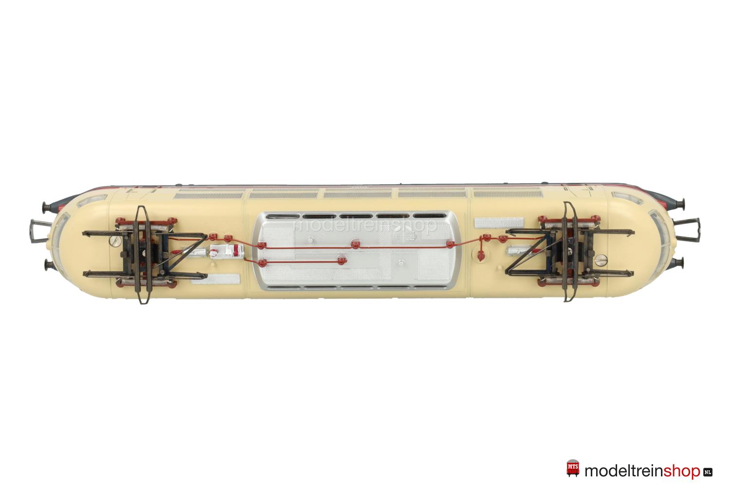 Model volgens bouwserie 103 (E 03) van de Deutsche Bundesbahn met de as indeling CO Co, 6 assig, 3 assen aangedreven, 4 antislipbanden, hendel om voor vooruit en achteruit te rijden. Voor en achter drie verlichte koplampen volgens A-code. Modelgetrouwe verlichte dakramen. Handschakelaar om naar keuze op boven- of beneden leiding te kunnen instellen. Onderbouw, welke doorloopt tot aan de lijn boven de beide onderste koplampen, van zinkpersgietwerk met vast aangebrachte bufferbalk, Bijzonder laag liggend zwaartepunt. Bovenbouw van kunststof. Modelgetrouw gelakt in de TEE kleuren beige-rood. Ingezette ramen met plastic ruiten. 2 verende pantografen. Aan beide einden koppelhaak.