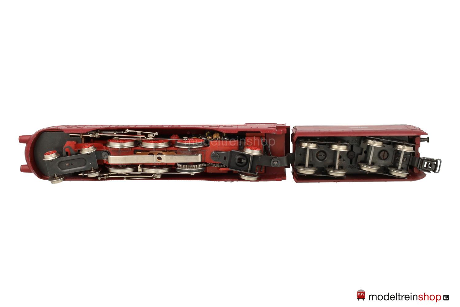 Bouwserie 03.10 van de Deutsche Reichsbahn Gesellschaft (DRG). 3 Assig via koppelstangen aangedreven. Ter verhoging van de trekkracht 2 antislipbanden. Afstandsbediening voor vooruit en achteruit doormiddel van een Marklin transformator. Twee verlichte frontseinlampen. Metalen bovenbouw en onderbouw. Aan de tender relex koppeling.