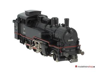 Achsfolge 1′ C. Schwarzes Gußfahrgestell, drei angetriebene Achsen, schwarze Räder, rot ausgelegte Gestänge. Schwarzes Kunststoffgehäuse, weiße Aufschriften, Betriebs-Nr.: 674.498. Dreilicht-Spitzensignal vorne.