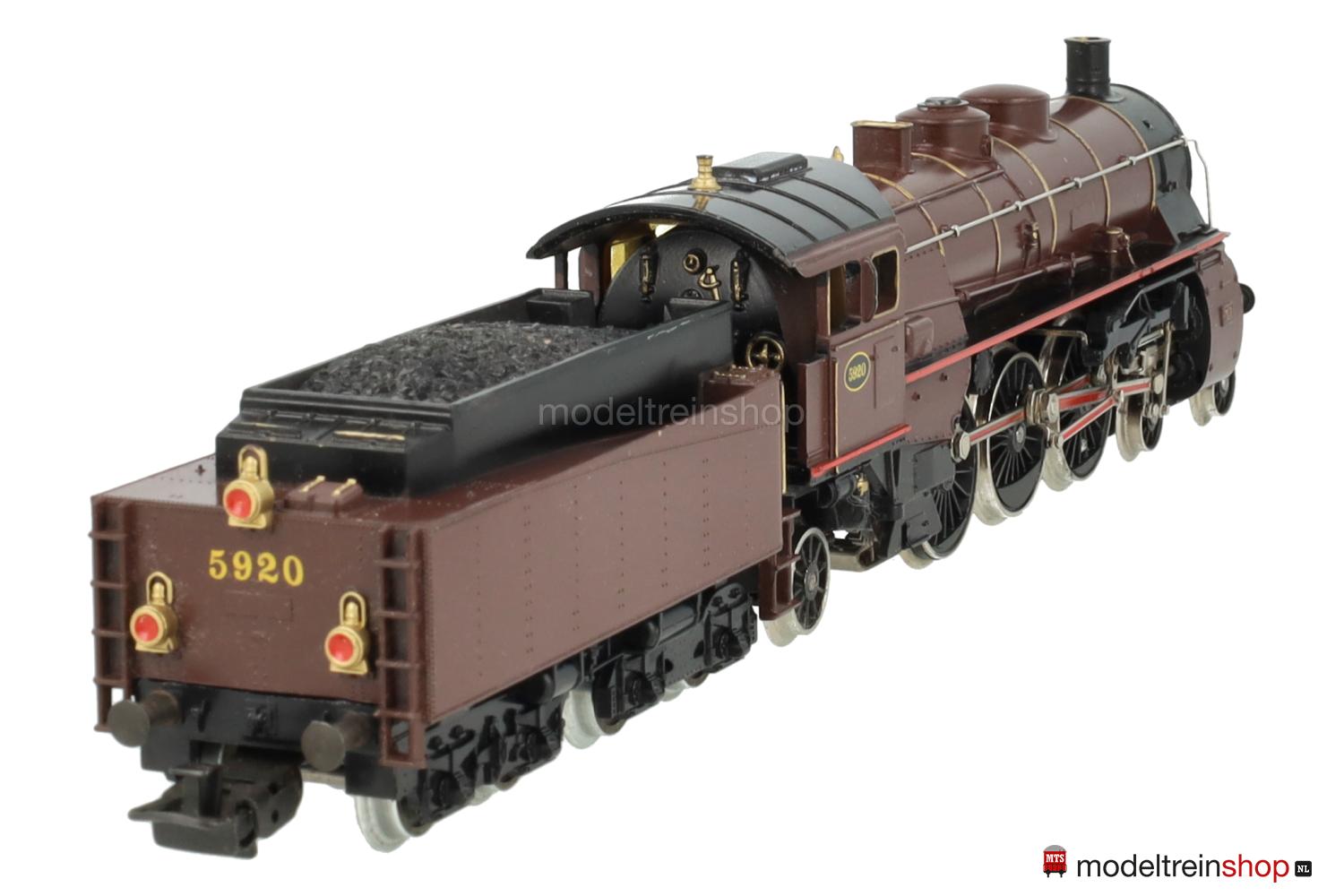 Achsfolge 2′ C 1′. Schwarzes Gußfahrgestell, drei angetriebene Achsen – davon zwei über Kuppelstangen, schwarze Räder, rot ausgelegte Gestänge. Braunes Gußgehäuse. Rauchkammer, vorderer Teil des Rahmens und Führerstandsdach schwarz, goldfarbene Kesselringe und goldfarbene Aufschriften, Betriebs-Nr.: 5920, angesetzte Handläufe. Dreilicht-Spitzensignal vorne. Vierachsiger Tender (2′ 2 T 27,4) aus Kunststoff, Drehgestelle nicht beweglich, Radsätze mit Scheibenrädern. Funktionsloses Dreilicht-Spitzensignal.