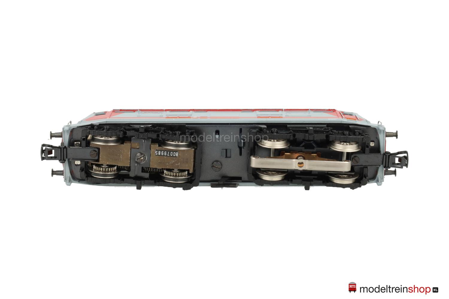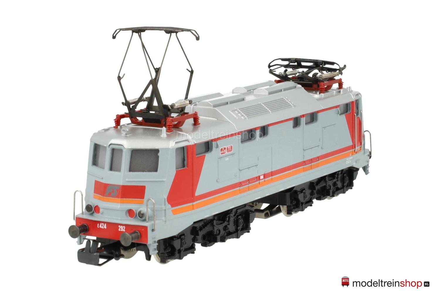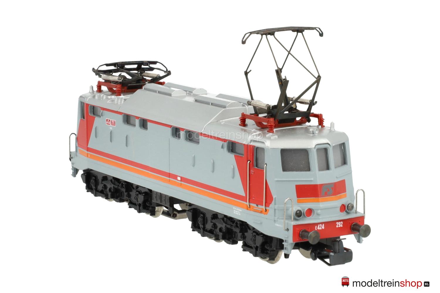 Achsfolge Bo’ Bo’. Fahrgestell = Blechrahmen, ein angetriebenes Drehgestell, dunkelgraues Fahrwerk. Hellgraues Gußgehäuse mit mehrfarbigen Zierstreifen, weiße Aufschriften, Betriebs-Nr.: E 424.292 auf rotem Grund, silberfarbenes Dach, Fenster mit Cellonscheiben hinterlegt, angesetzte Griffstangen. Zweilicht-Spitzensignal beidseitig.