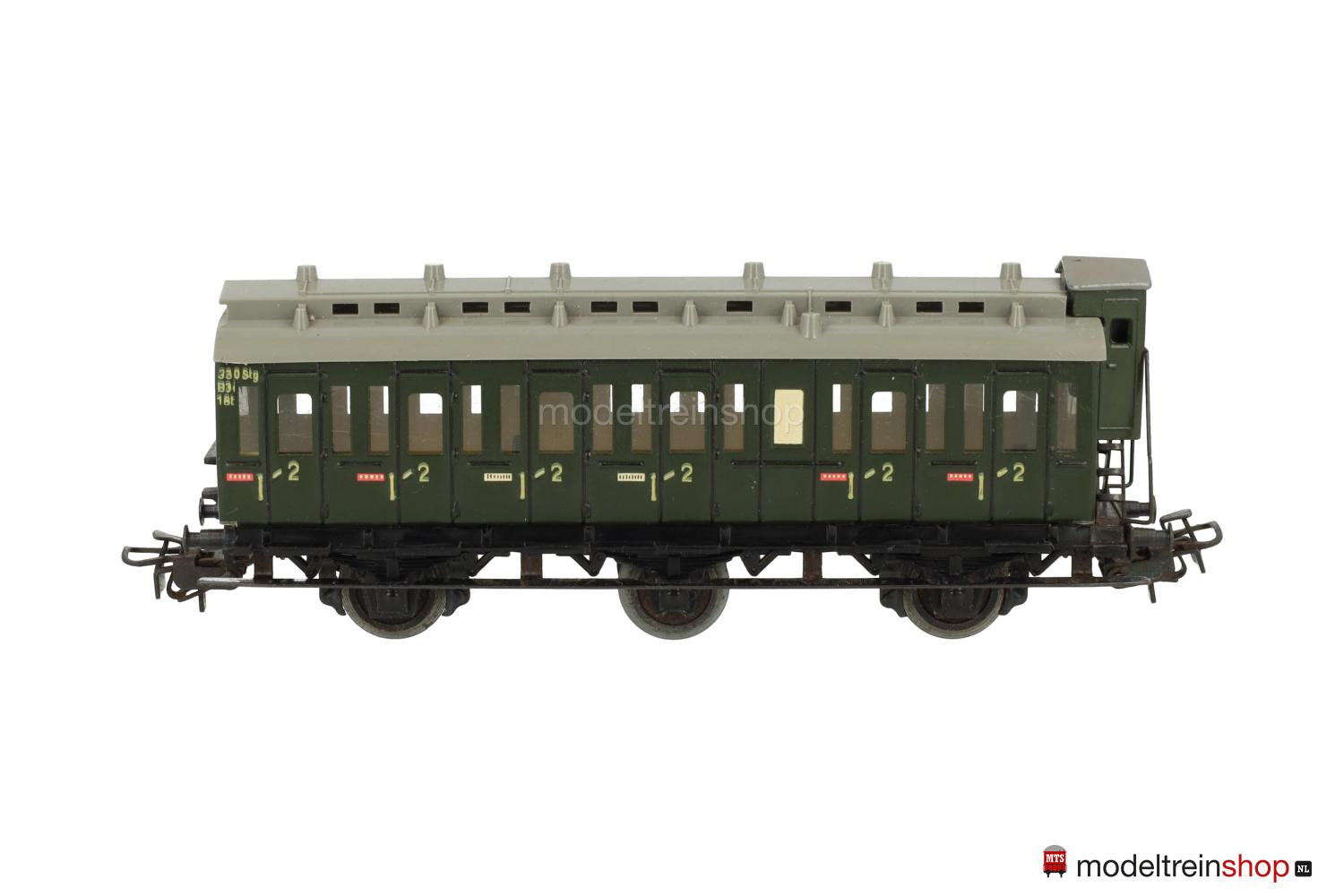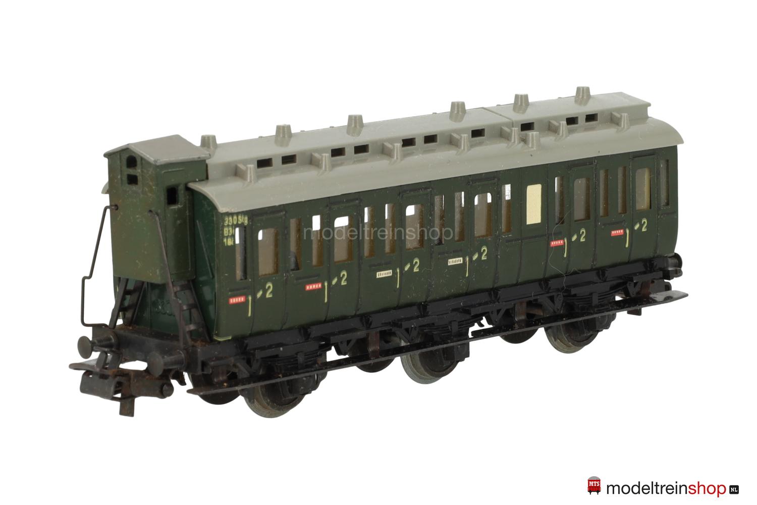Schwarzes Blech-Untergestell, 3 Achsen. Grüner Aufbau mit Bremserhaus, Seitenwände und Trittbretter aus Blech, graues Kunststoff-Dach mit Oberlichtern und Wendler-Lüftern (Farben in verschiedenen Nuancen ausgeliefert), eine Stirnwand mit erhabener Aufschrift “330/2”, rote und weiße “Raucher”- und “Nichtraucher”-Schilder, Fenster mit Cellonscheiben hinterlegt.