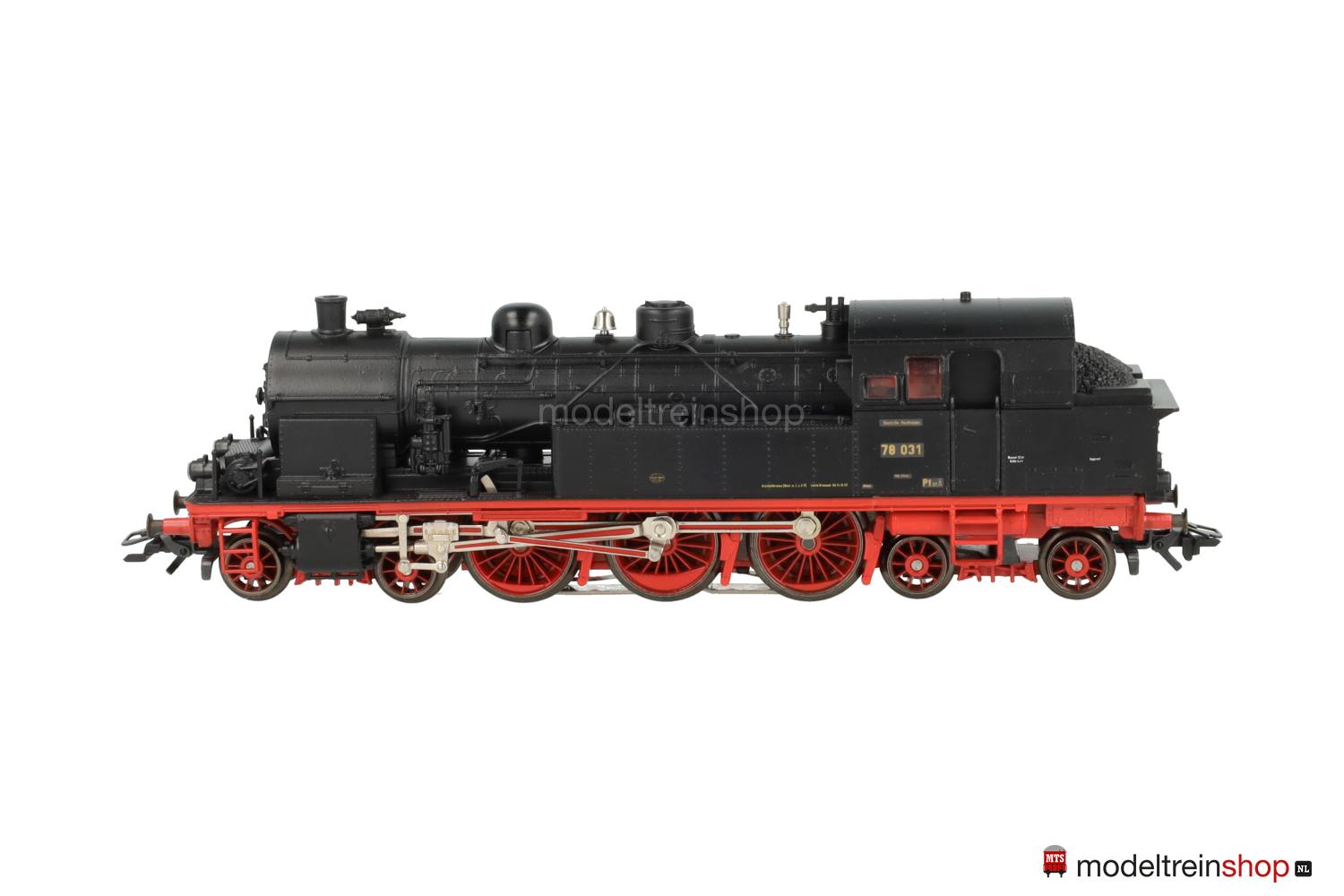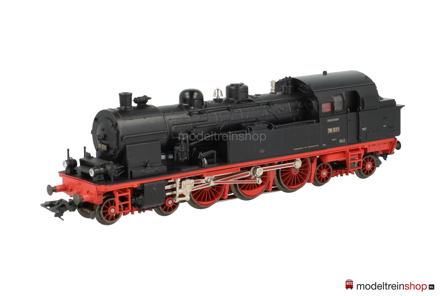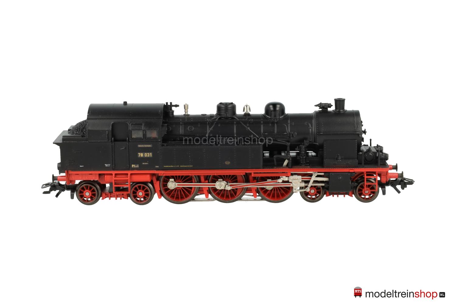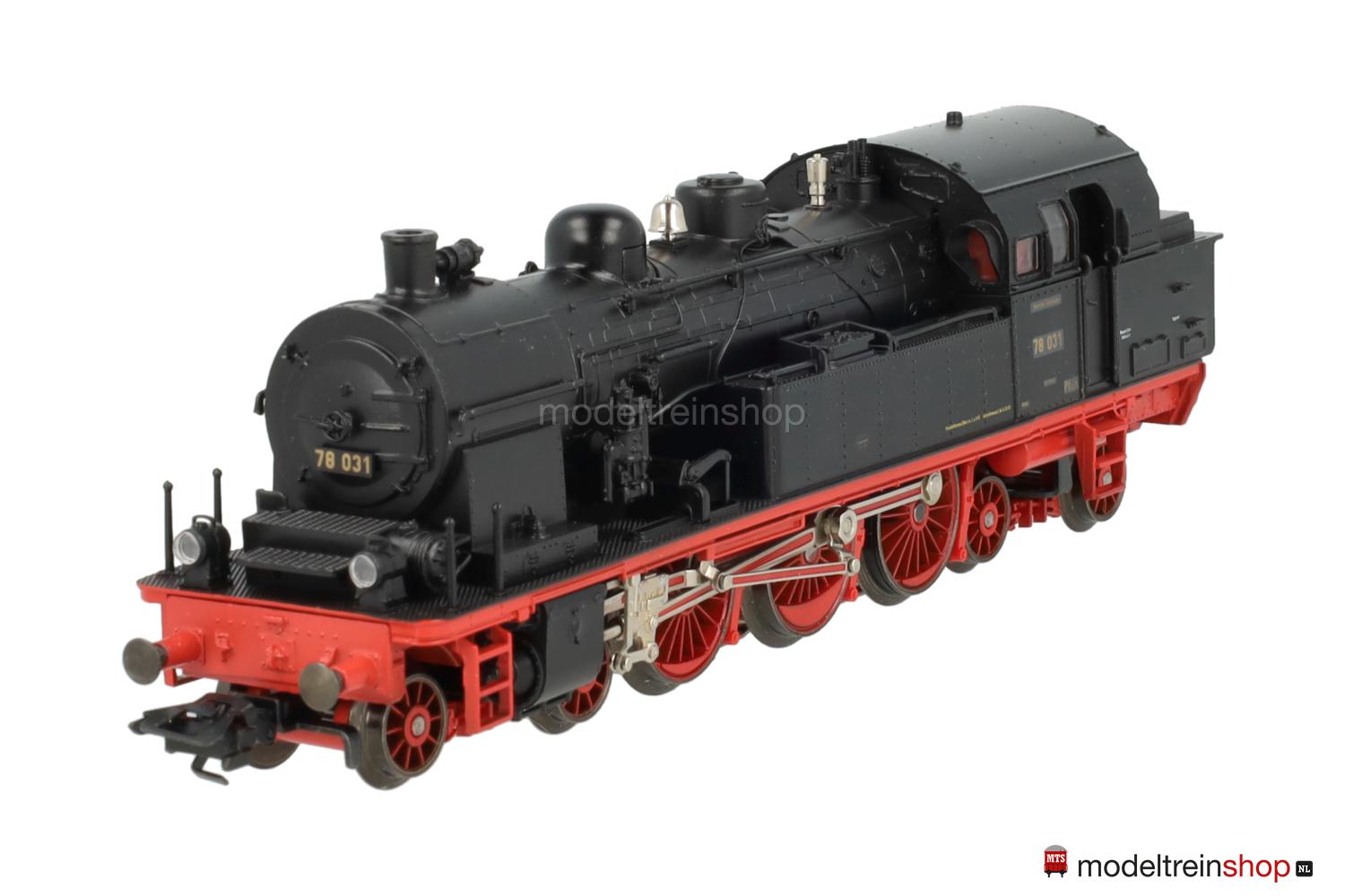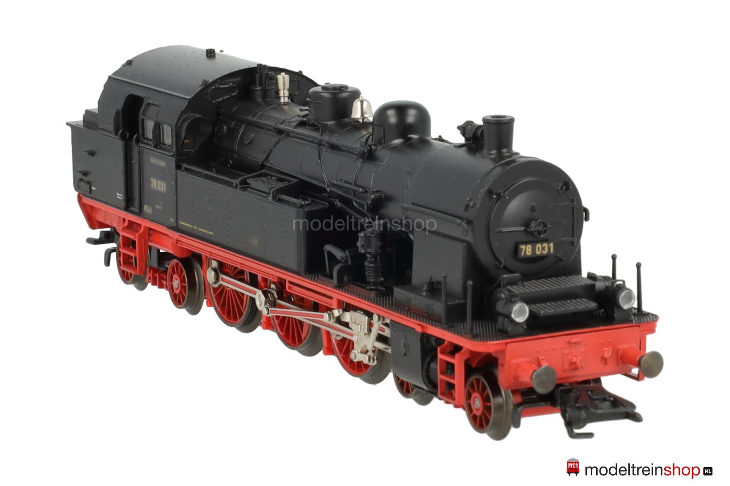 Achsfolge 2′ C 2′. Dunkelrotes Gußfahrgestell, drei angetriebene Achsen. Schwarzes Gehäuse aus Guß und Kunststoff, weiße Aufschriften, Betriebs-Nr.: 78 031, eingesetzte Fenster, angesetzte Griffstangen und Handläufe. Zweilicht-Spitzensignal beidseitig, Lichtwechsel mit Fahrtrichtungsänderung.