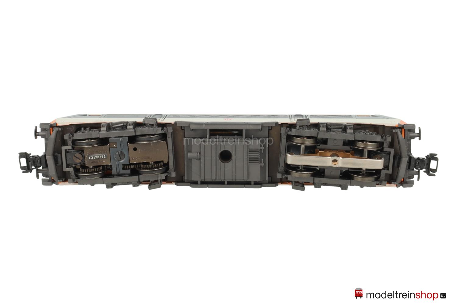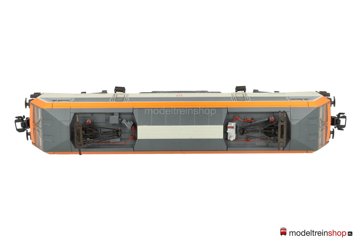 Achsfolge Bo’ Bo’. Anthrazitfarbenes Gußfahrgestell, ein angetriebenes Drehgestell, anthrazitfarbenes Fahrwerk. Gußgehäuse, achatgrau/basaltgrau/pastellorange, basaltgraues Dach, schwarze Aufschriften, farbige Wappen, eingesetzte Fenster, angesetzte Griffstangen. Zweilicht-Spitzensignal beidseitig, Lichtwechsel mit Fahrtrichtungsänderung. Kupplungen austauschbar gegen beiliegende Norm-Kupplungsaufnahmen.