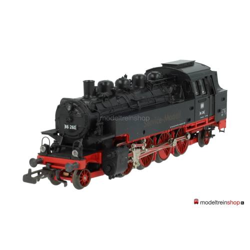Achsfolge 1′ D 1′. Rotes Gußfahrgestell, vier angetriebene Achsen – davon drei über Kuppelstangen), brünierte Räder. Schwarzes Kunststoffgehäuse, weiße Aufschriften, Betriebs-Nr.: 86 260, eingesetzte Fenster, angesetzte Griffstangen und Trittstufen. DELTA-Modul, Dreilicht-Spitzensignal beidseitig, Lichtwechsel mit Fahrtrichtungsänderung.