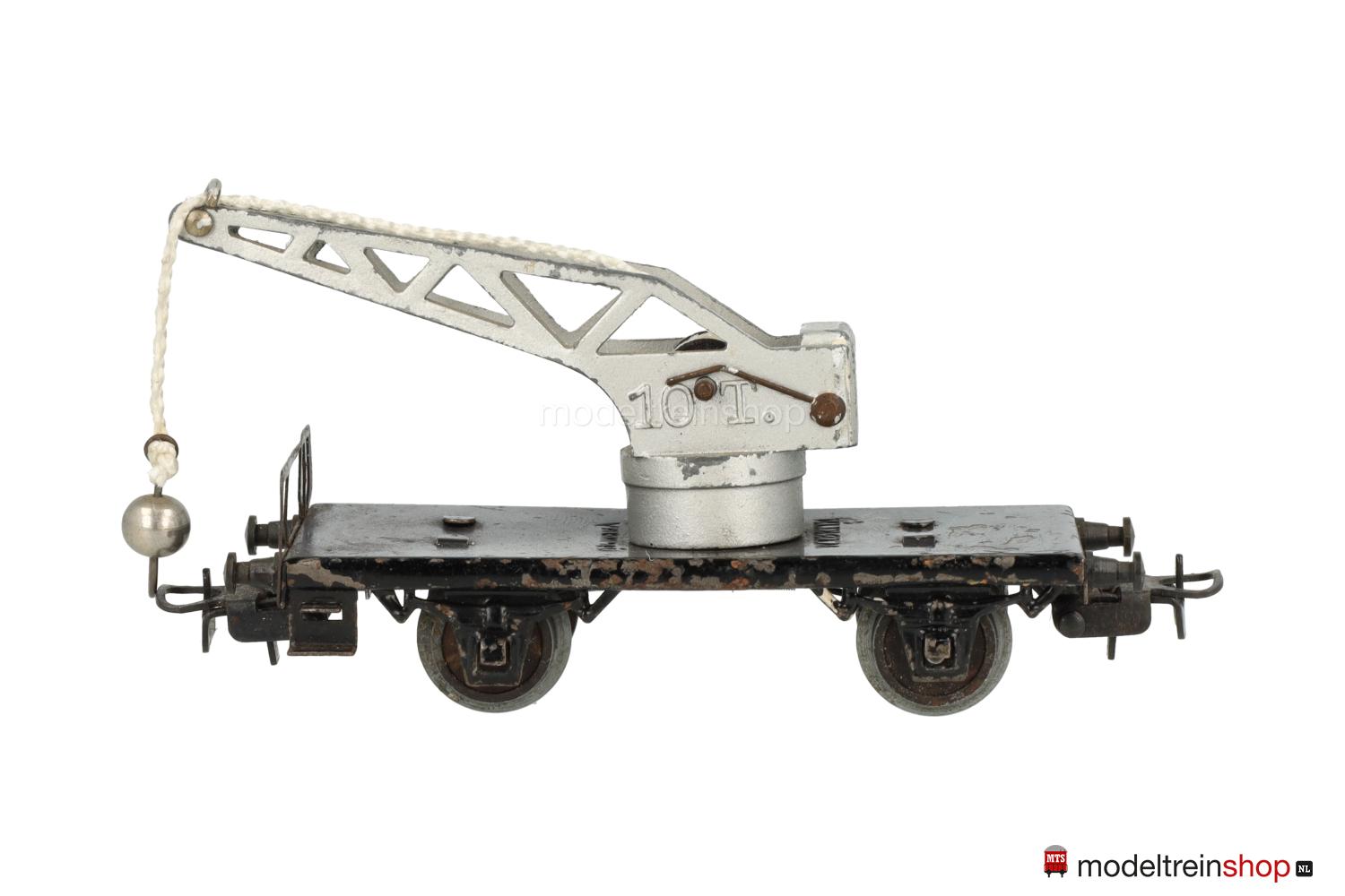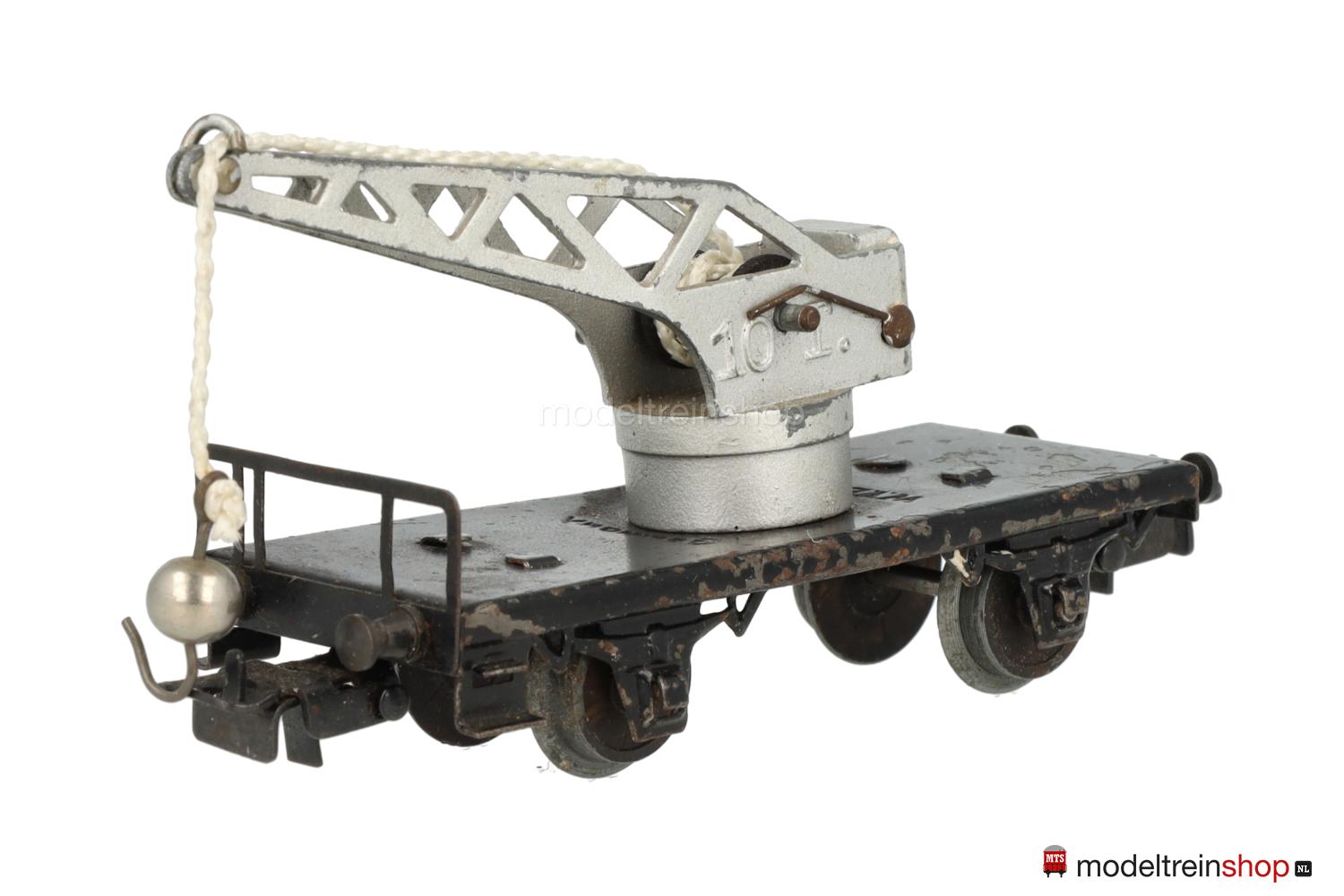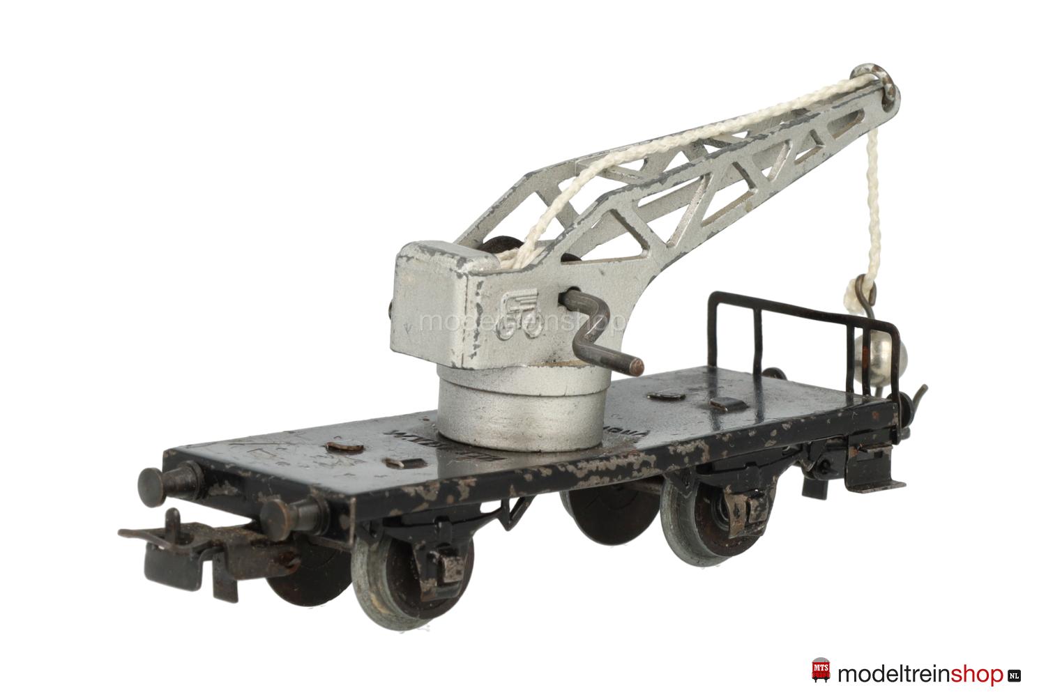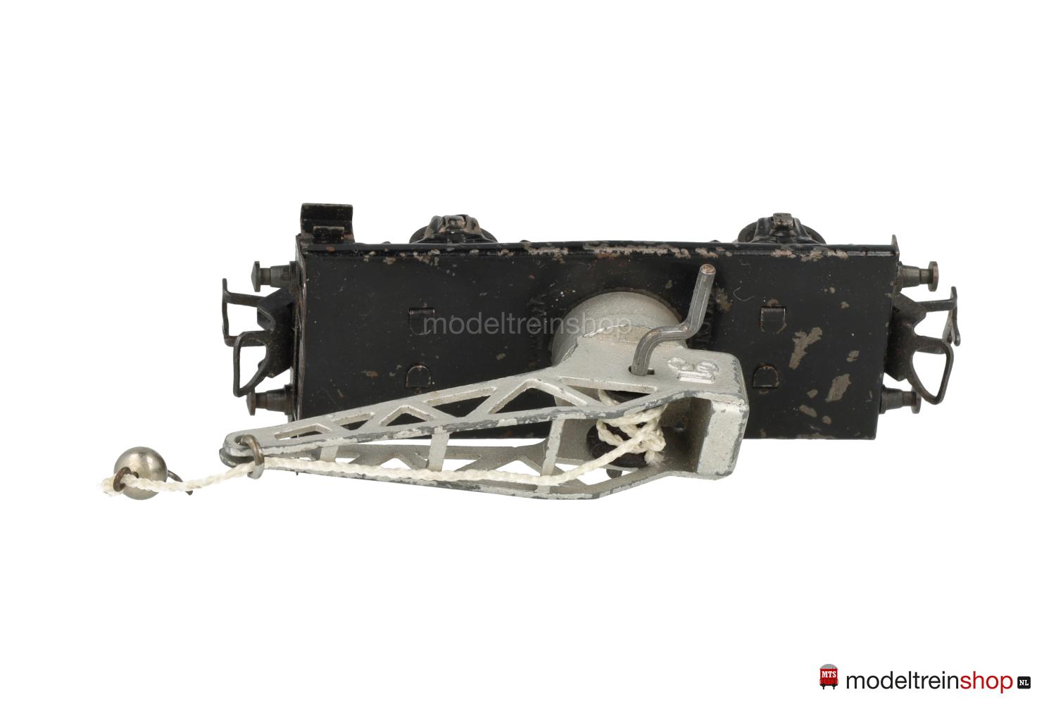 Schwarzes Blech-Untergestell. Aufbau: aluminiumfarbener drehbarer Kran mit Winde, Kugelhaken und Gegengewicht.