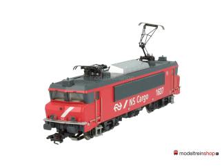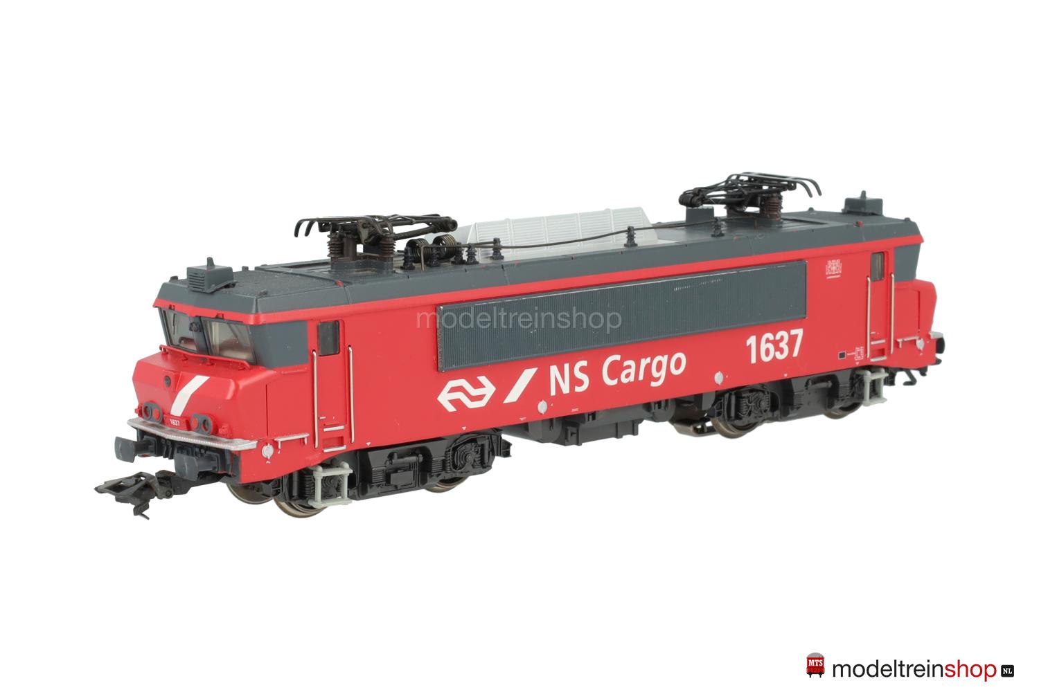 Achsfolge Bo’ Bo’. Anthrazitfarbenes Gußfahrgestell, ein angetriebenes Drehgestell, anthrazitfarbenes Fahrwerk, Digital-Hochleistungs-Antrieb. Rotes Gußgehäuse, dunkelgraue Lüftergitter, dunkelgraues Dach mit silberfarbenem Dachaufsatz, weiße Aufschriften – u.a.: “NS Cargo”, Betriebs-Nr.: 1637, eingesetzte Fenster, angesetzte Griffstangen. Fx-Decoder, Geräuschmodul, Dreilicht-Spitzensignal beidseitig, Lichtwechsel mit Fahrtrichtungsänderung. Spitzensignal, Signalhorn und Fahrgeräusche digital schaltbar.