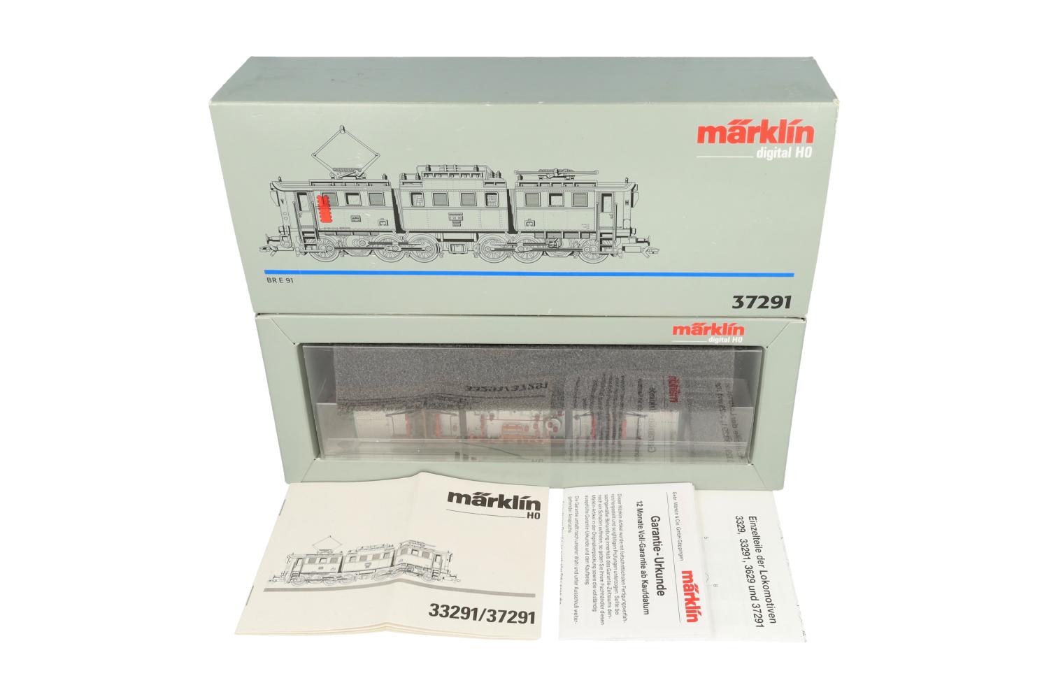 Achsfolge C’ C’. Anthrazitfarbenes zweiteiliges Gußfahrgestell, drei Achsen und eine Blindwelle angetrieben, Digital-Hochleistungs-Antrieb. Dreiteiliges grünes Gußgehäuse, silbergraues Dach, weiße Zierlinien, weiße und goldfarbene Aufschriften, Betriebs-Nr.: E 91 99, Führerstandskennzeichnungen “V” und “H”, eingesetzte Fenster mit schwarzen Rahmen, Sonnenblenden an den Stirnfenstern. Faltenbälge und Leitungen zwischen den Gehäuseteilen aus Kunststoff, untere Stirnlampen tiefergelegt, Inneneinrichtung. Digital-Decoder, Dreilicht-Spitzensignal beidseitig, Lichtwechsel mit Fahrtrichtungsänderung, Spitzensignal digital schaltbar.