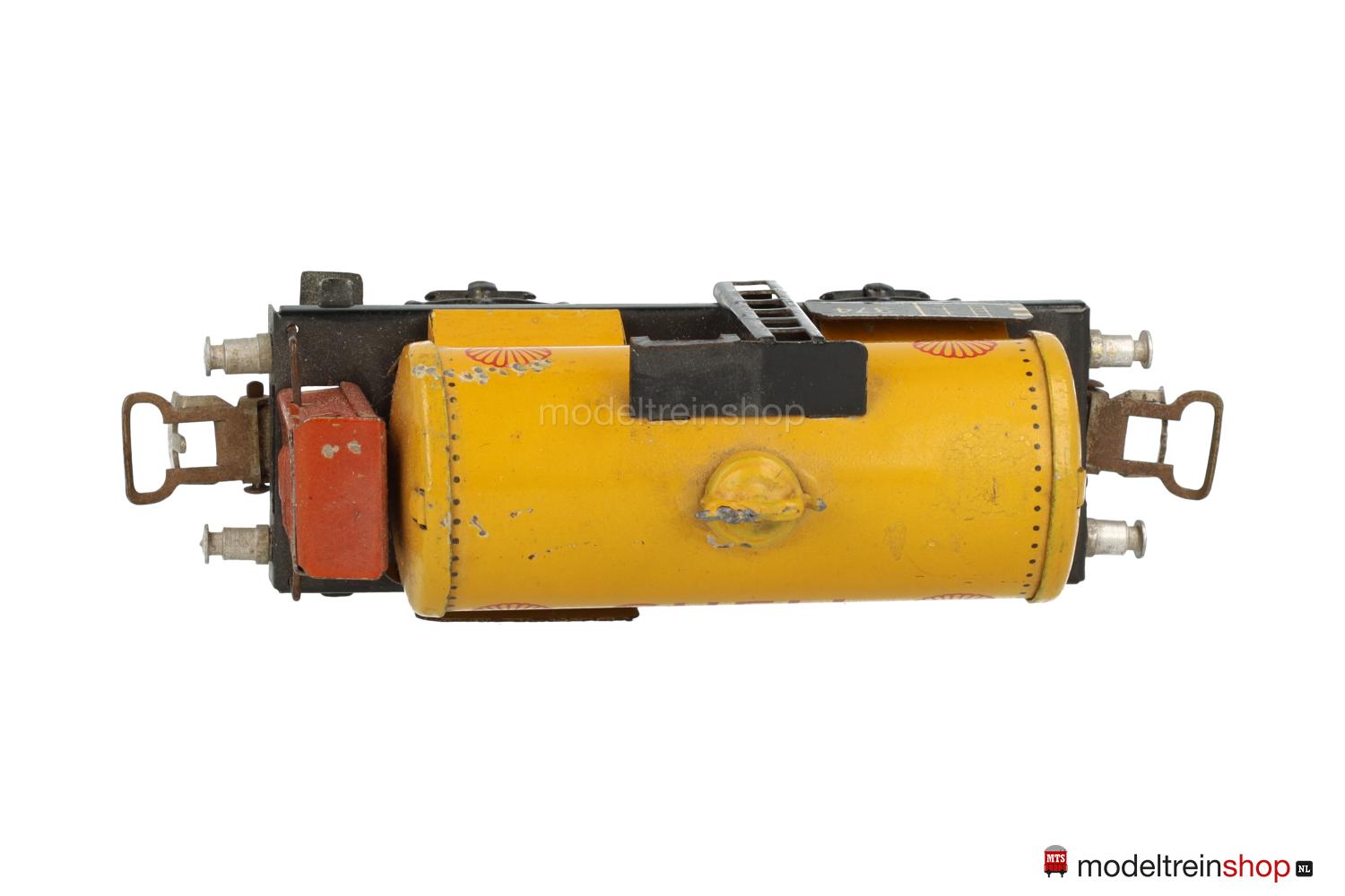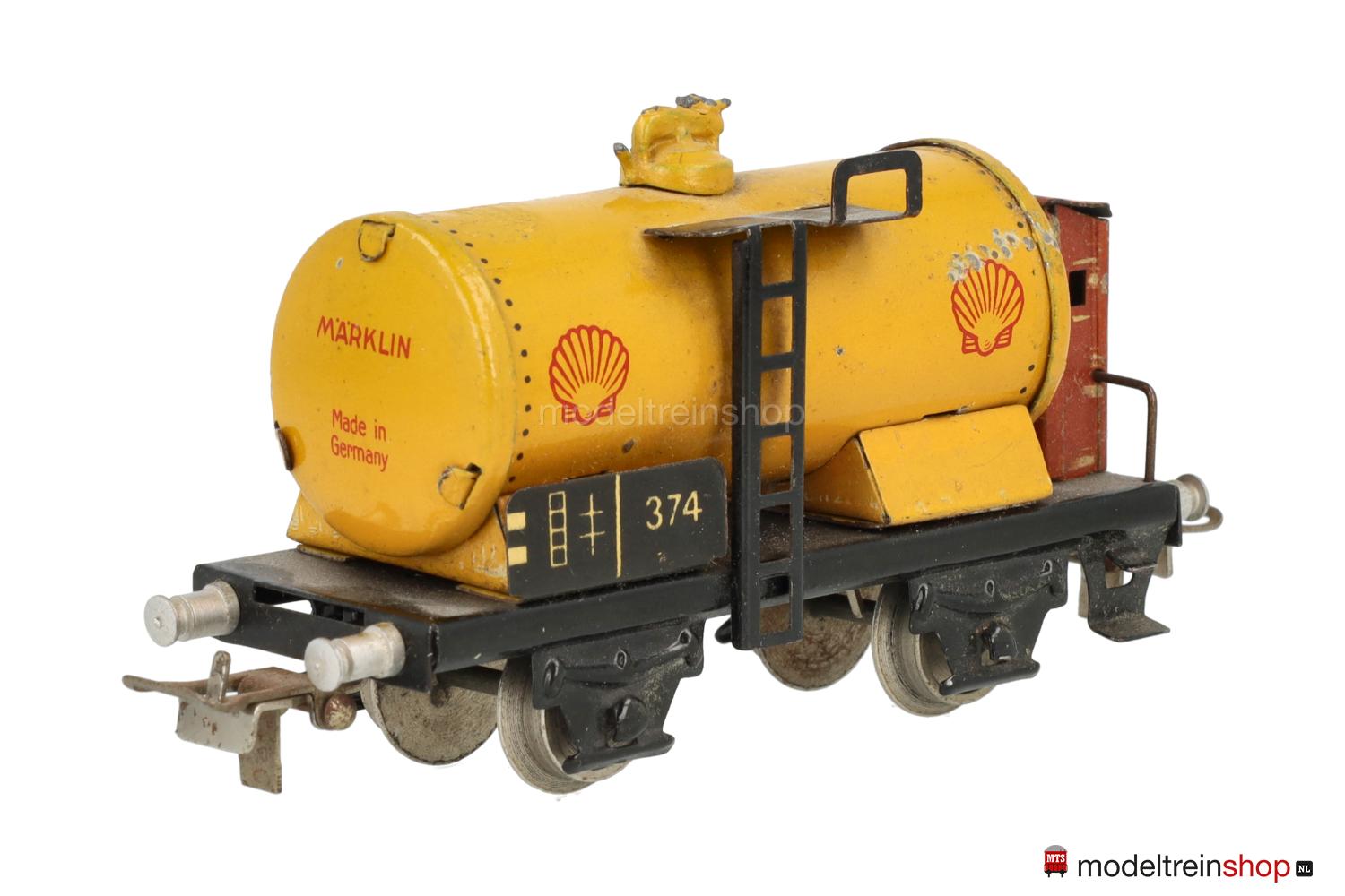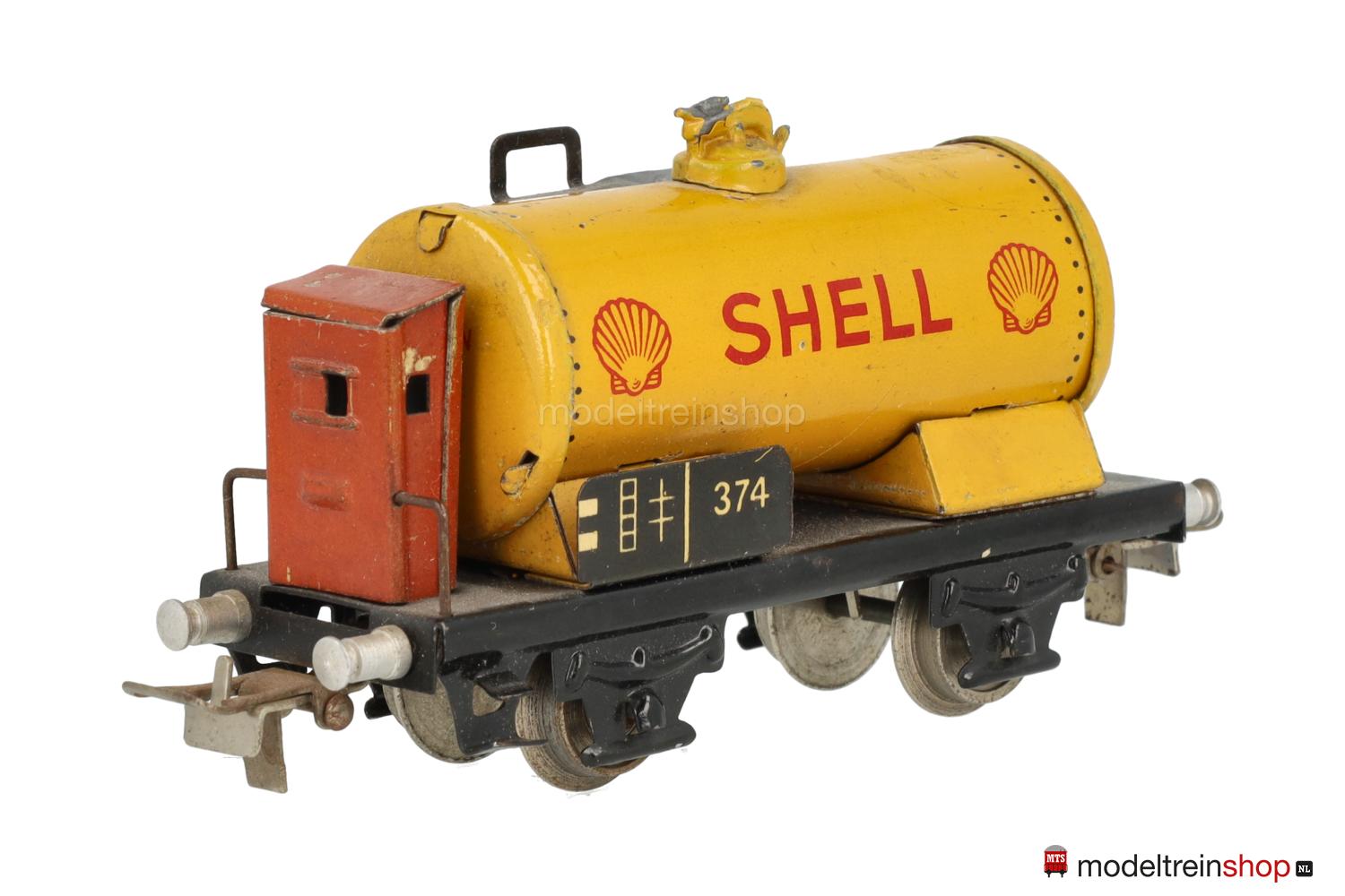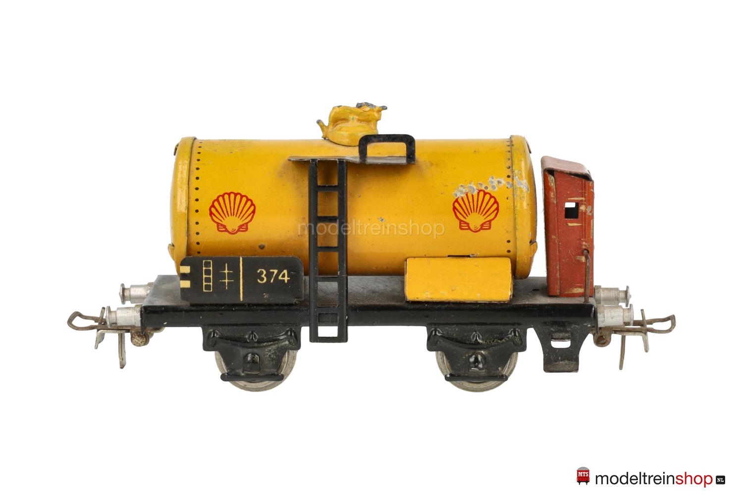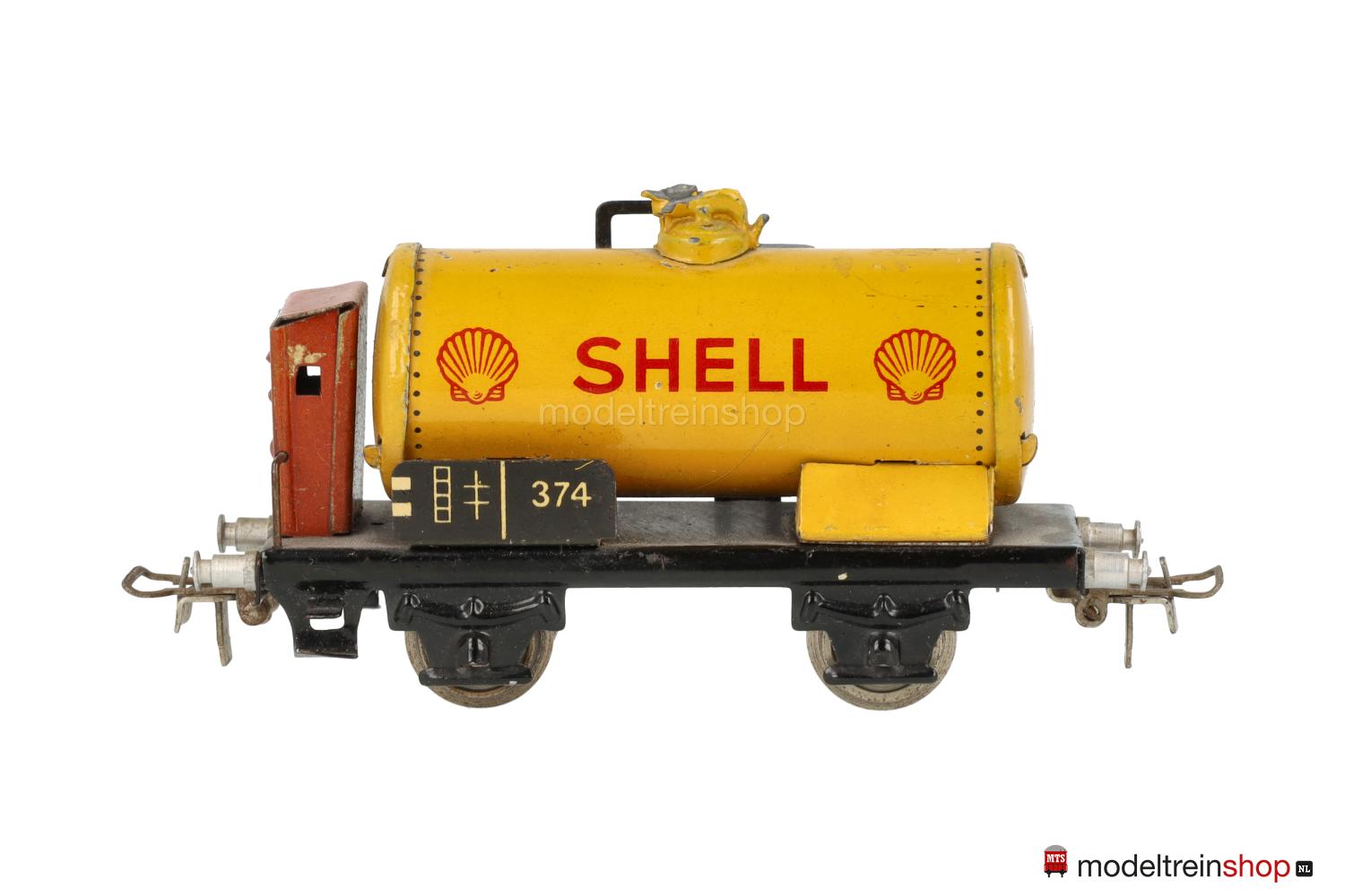 Schwarzes Blech-Untergestell mit Trittstufen und Geländer am Bremserhaus, Radsätze mit Stummelachsen. Gelber Blech-Kessel, rote SHELL-Embleme, braunes Bremserhaus (in verschiedenen Farbnuancen ausgeliefert), Leiter und Laufsteg aus Metall, Gattungsschilder mit Aufschrift “374”.