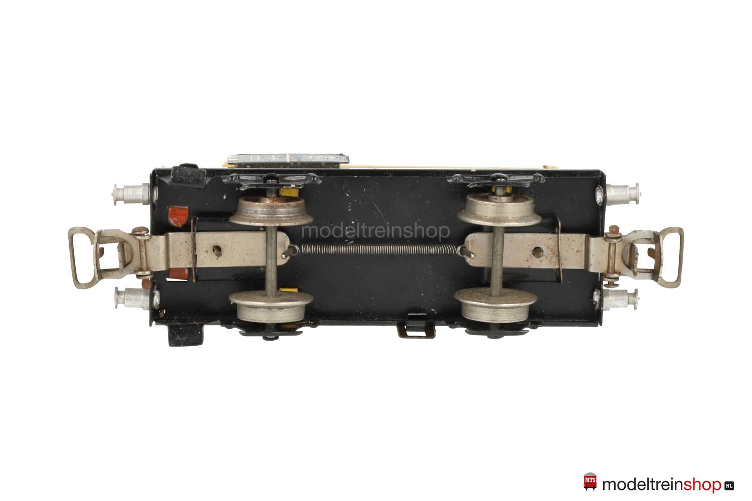 Achslager mit vier Federblättern, schwarze Puffer, ab 1950 Bodenprägung: “MÄRKLIN Germany”. Kessel-Strinseiten ohne Aufschriften, Einfüllstutzen wieder gelb, rotbraunes Bremserhaus.