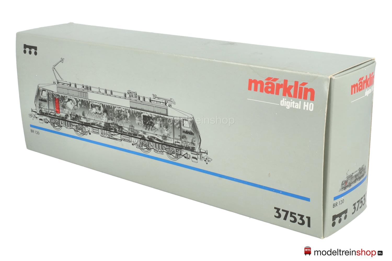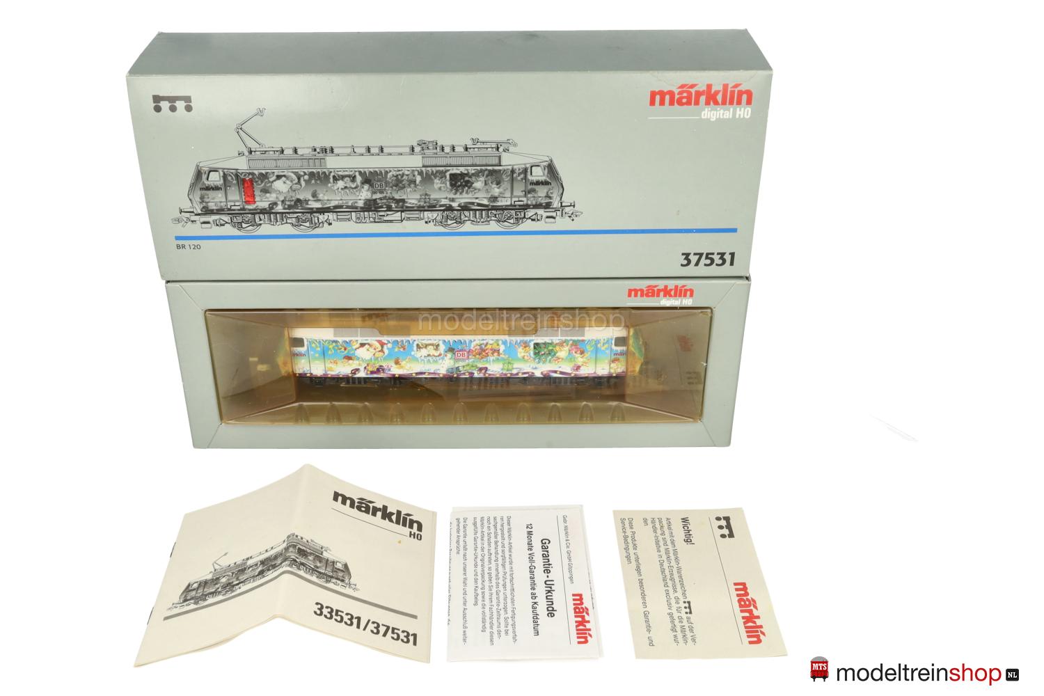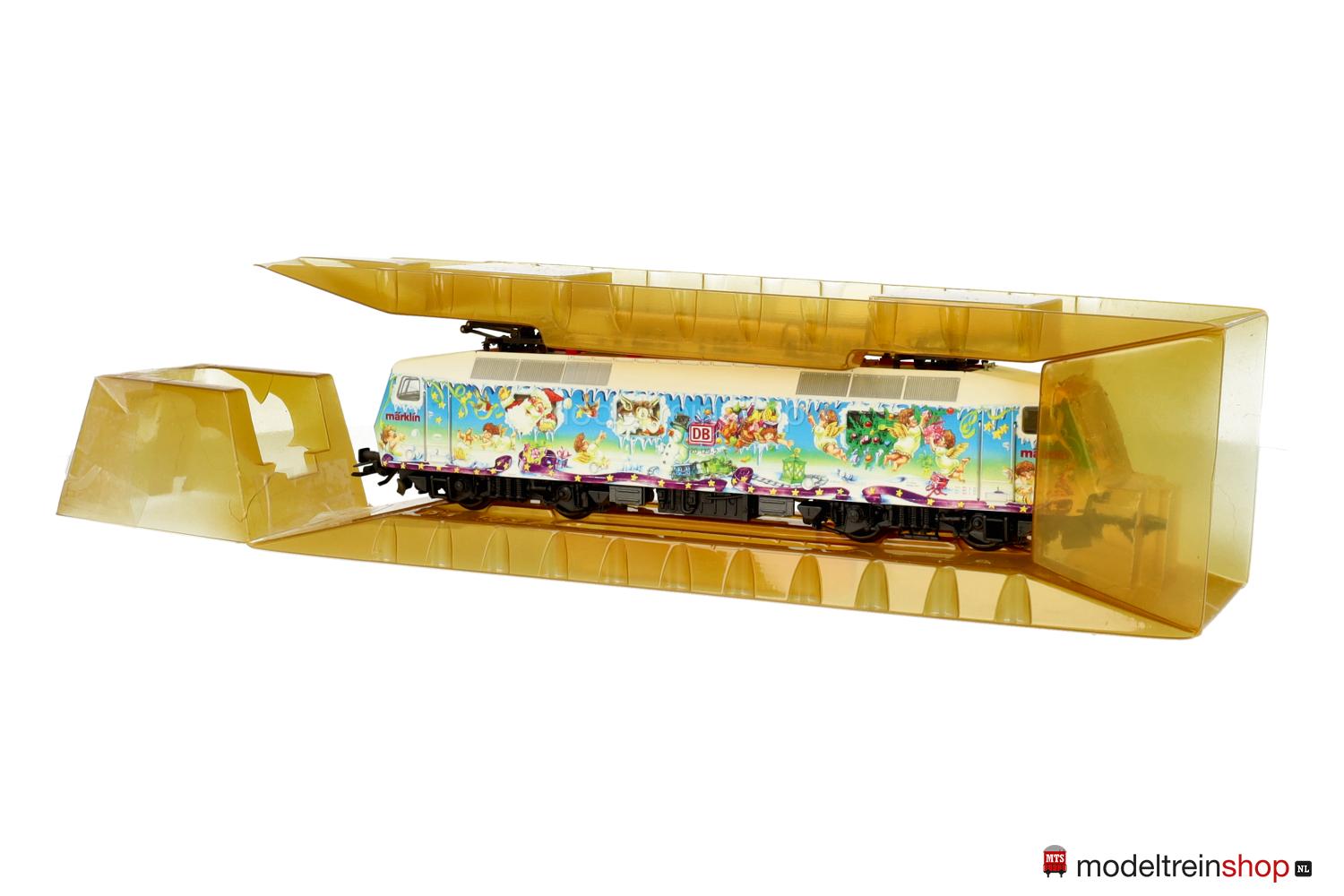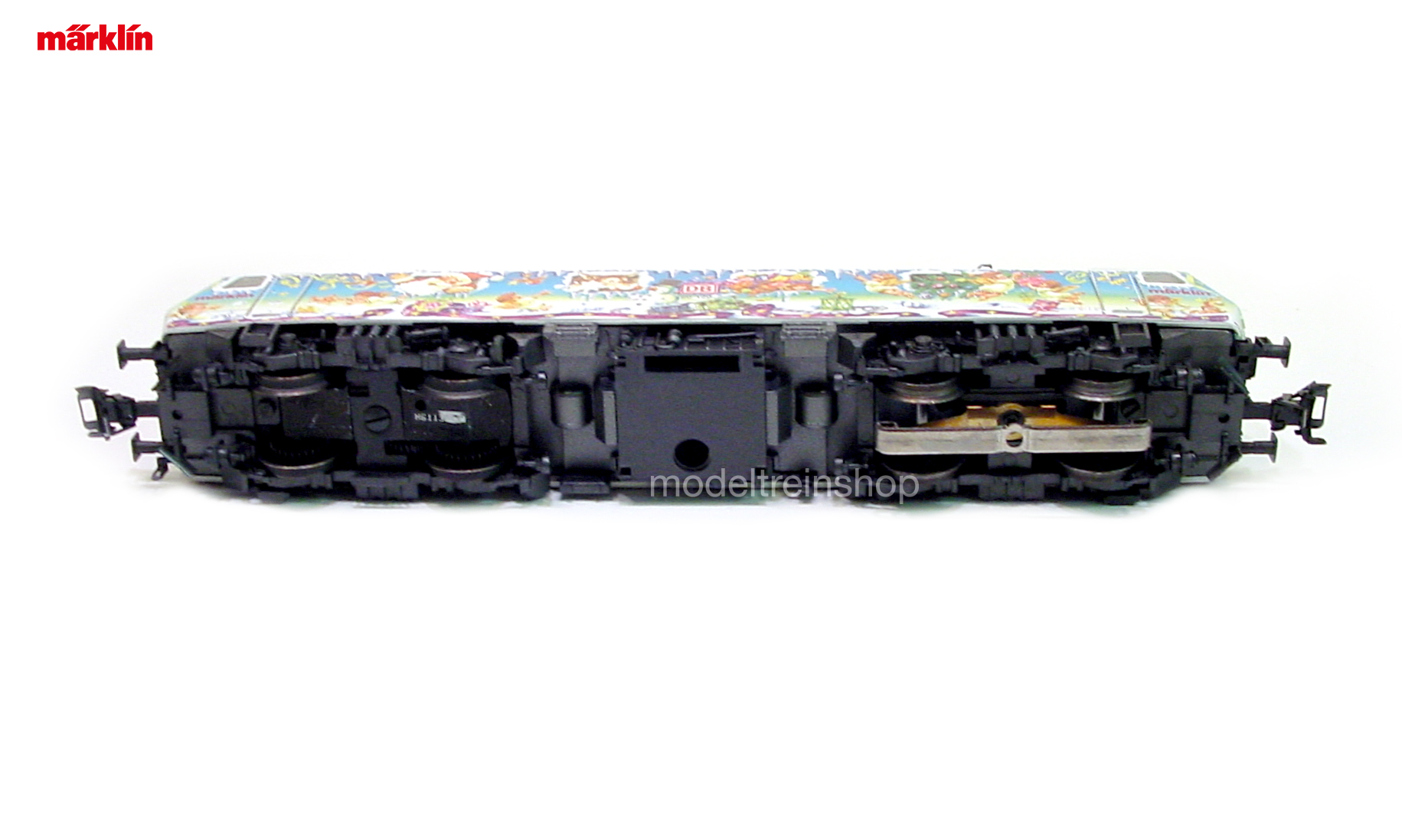 Achsfolge Bo’ Bo’. Gußfahrgestell, ein angetriebenes Drehgestell, anthrazitfarbenes Fahrwerk, Digital-Hochleistungs-Antrieb. Weißes Kunststoffgehäuse, Dach und Lüftergitter silbergrau, rote DB-Embleme, schwarze Aufschriften, Betriebs-Nr.: 120 129-2, rote “märklin”-Schriftzüge, rundum bunte Weihnachtsmotive, eingesetzte Fenster, angesetzte Griffstangen, drei Dachleitungen. Digital-Decoder, Dreilicht-Spitzensignal beidseitig, Lichtwechsel mit Fahrtrichtungsänderung, Spitzensignal digital schaltbar.