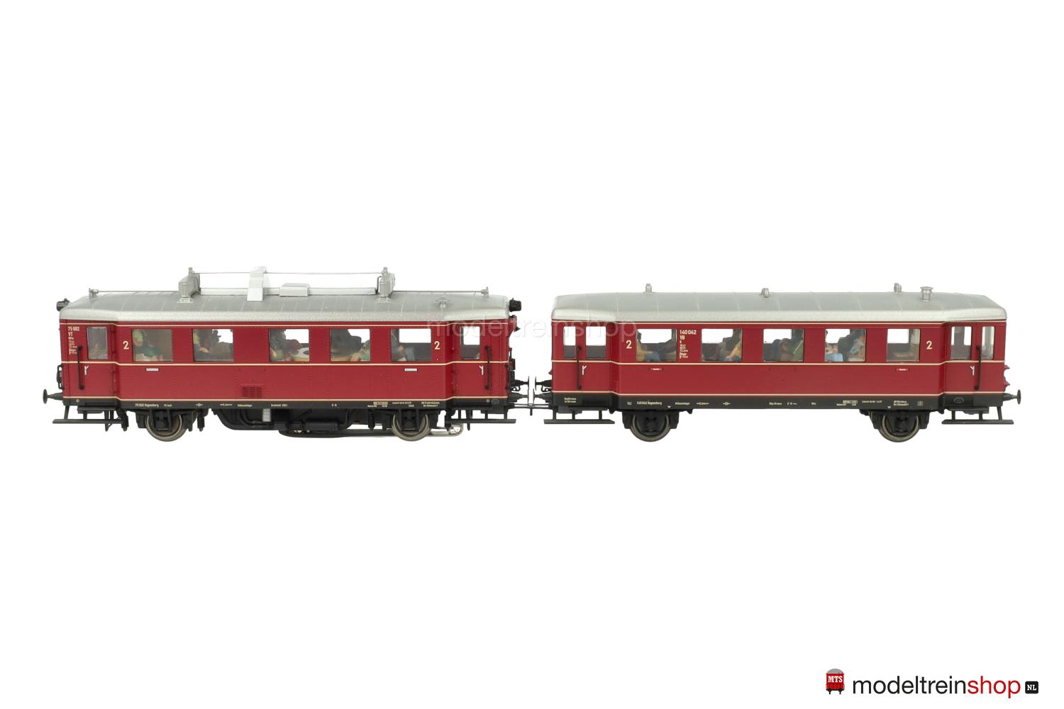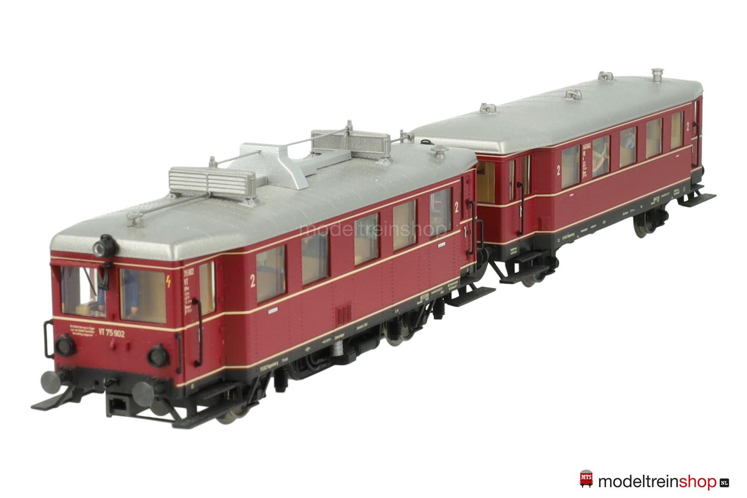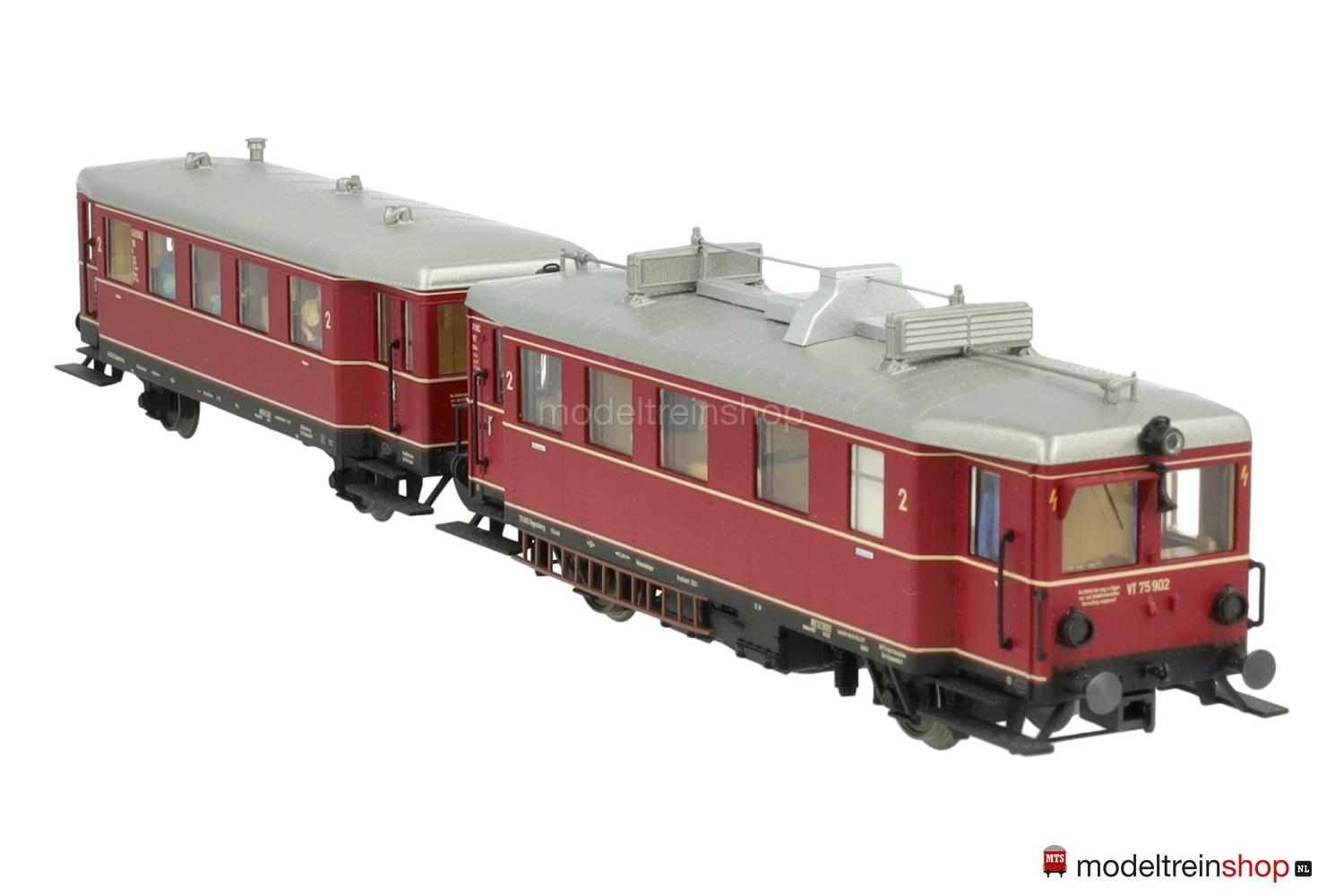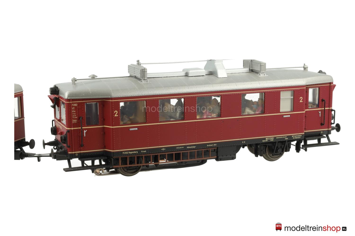 Asconfiguratie B. Zwart gegoten kunststof onderstel, twee aangedreven assen, zwarte kunststof treeplanken, bufferbalken. Paarsrood geklonken gegoten carrosserie, zwart frame met beige belettering, wit geklonken aluminium dak met dakbevestigingen, afzonderlijk aangebrachte handgrepen en claxons, ingezette ramen, interieurdetails, interieurverlichting. Wegnummer: 75 902, beige belettering, drie beige sierstrepen, klasseaanduiding “2”, witte rookverbodsborden. Mfx-decoder. Drie koplampen en twee rode achterlichten aan één uiteinde, automatische wit/rode lichtwisseling met de rijrichting, stroomgeleidende koppeling. Extra functies digitaal schakelbaar.