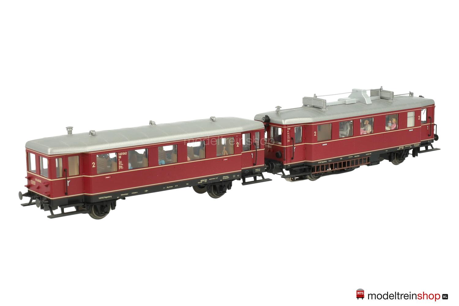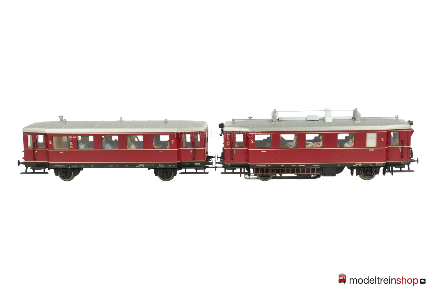 Met Digital-decoder mfx en uitgebreide geluidsfuncties. Geregelde hoogvermogenaandrijving met vliegwiel in het motorrijtuig. Beide assen in het motorrijtuig aangedreven. Antislipbanden. Standaard ingebouwde interieurverlichting in het motorrijtuig en het aanhangrijtuig. Driepuntsfrontsein wisselt met de rijrichting en 2 rode sluitseinen op het motorrijtuig en interieurverlichting traditioneel in bedrijf, digitaal schakelbaar. Verlichting met onderhoudsarme warmwitte LED’s. Rood sluitsein op het motorrijtuig is aan zijde 2 aan de kant van het aanhangrijtuig afzonderlijk digitaal schakelbaar. Aanhangwagen voorbeeldgetrouw zonder frontsein. Tussen de voertuigeenheden stroomgeleidende verbinding met koppeldissel met schaargeleiding. Interieur. Onbelemmerde doorkijk in het motorrijtuig en het aanhangrijtuig. Op het motorrijtuig afzonderlijk gemonteerde ladder. Lengte over de buffers van de tweedelige wagengroep 28,1 cm.