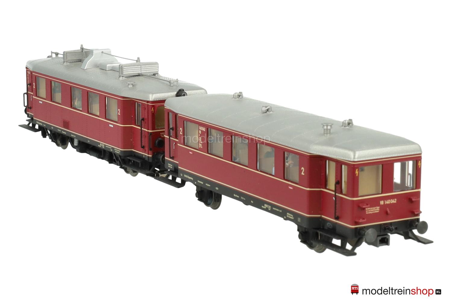 Schwarzes Guß-, Kunststoffuntergestell, schwarze angesetzte Trittbretter aus Kunststoff, Stangenpuffer. Purpurrotes genietetes Gußgehäuse, schwarzer Rahmen mit beigen Aufschriften, weißaluminiumfarbenes genietetes Dach mit Dachaufbauten, angesetzte Griffstangen, eingesetzte Fenster, Inneneinrichtung, Innenbeleuchtung. Betriebs-Nr.: 140 042, beige Aufschriften, drei beige umlaufende Zierlinien, Klassenkennzeichnung “2”, rote Raucherschilder.