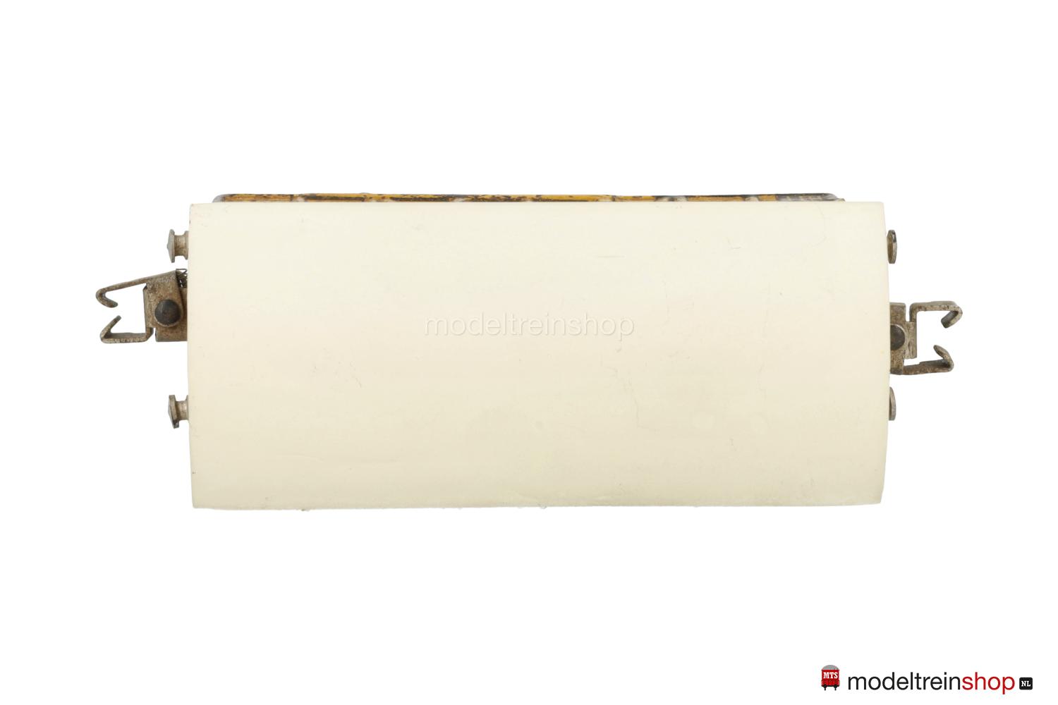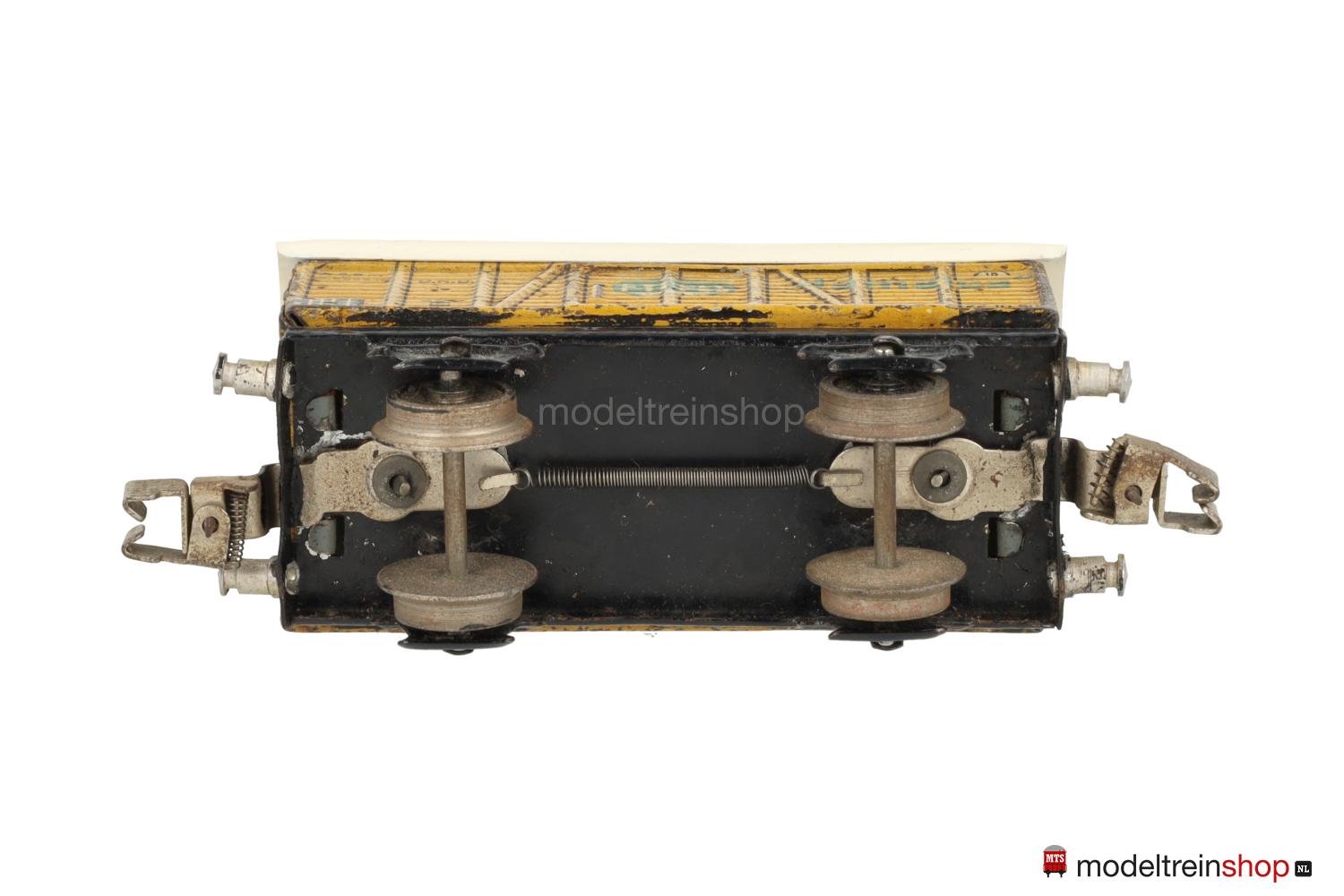 Untergestell: Achslager mit drei geprägten Federblättern, brünierte Puffer. Zitronengelber Wagenkasten.