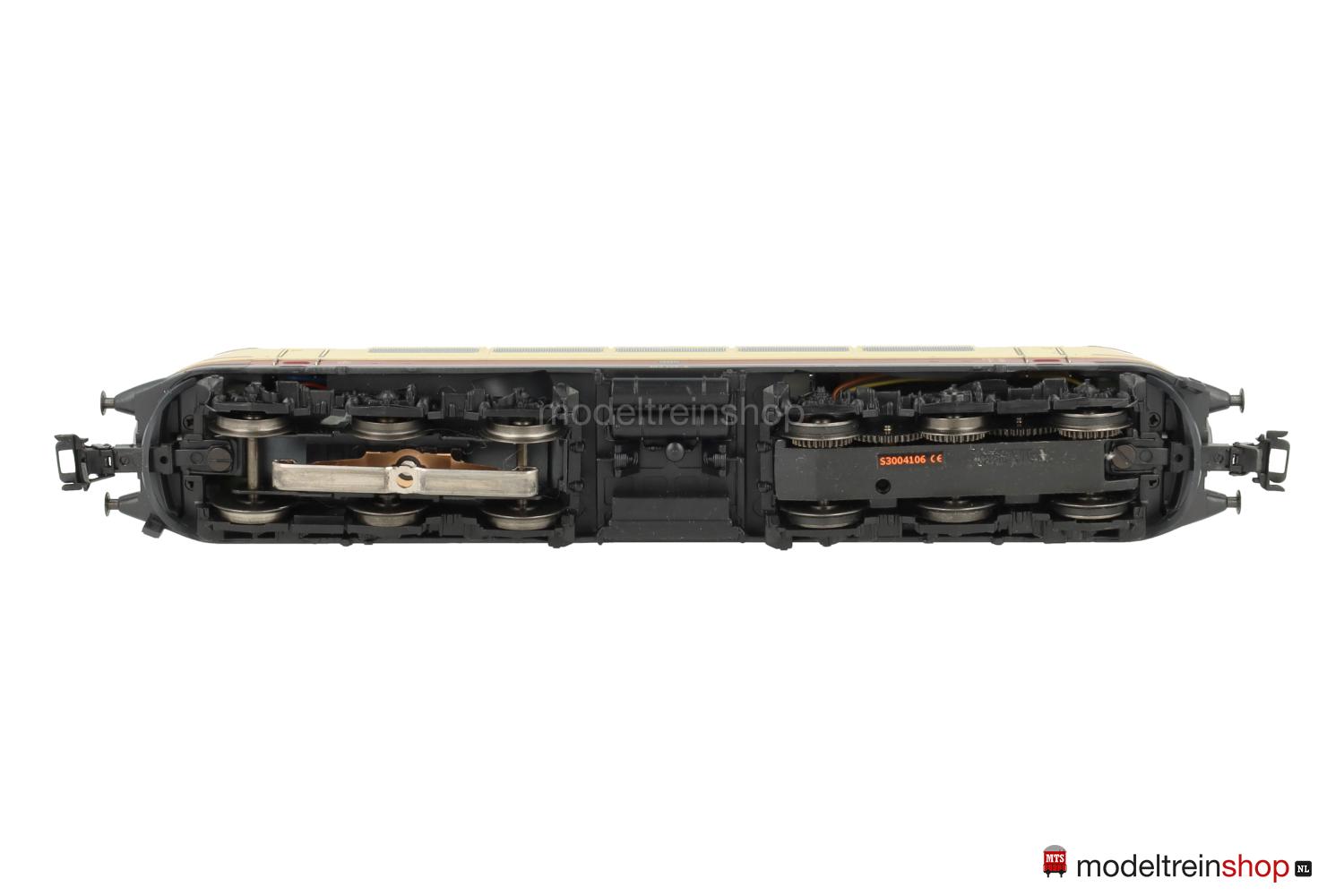 Achsfolge Co’ Co’. Schwarzes Gußfahrgestell mit rot/dunkelgrauem Rahmen, ein angetriebenes Drehgestell, schwarzes Fahrwerk, C-Sinus-Motor. Beigefarbenes Kunststoffgehäuse, dunkelbrauner Dach-Aufsatz, unabhängig voneinander fernsteuerbare Pantographen-Bewegungen (heben und senken) über zwei Piezo-Motoren, rote Zierstreifen an den Führerständen, schwarze DB-Embleme, beigefarbene Aufschriften, Betriebs-Nr.: 103 137-6, eingesetzte Fenster, angesetzte Griffstangen. Fx-Decoder, Dreilicht-Spitzensignal und zwei integrierte rote Schlußlichter beidseitig, Lichtwechsel (weiß/rot) mit Fahrtrichtungsänderung. Spitzensignal, Maschinenraumbeleuchtung, Pantographen-Antriebe sowie Anfahrbeschleunigung und Bremsverzögerung digital schaltbar. Ansteckbare Frontschürzen und Bremsschläuche beigelegt.