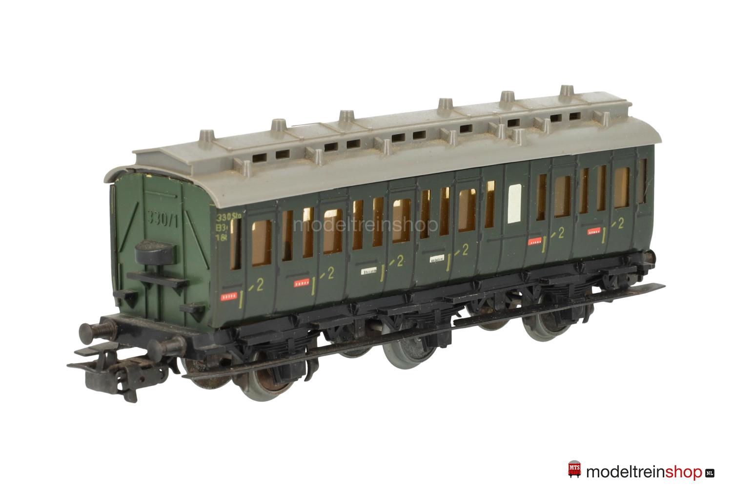 Schwarzes Blech-Untergestell, 3 Achsen. Grüner Aufbau ohne Bremserhaus, Seitenwände und Trittbretter aus Blech, graues Kunststoff-Dach mit Oberlichtern und Wendler-Lüftern (Farben in verschiedenen Nuancen ausgeliefert), eine Stirnwand mit erhabener Aufschrift “330/1”, rote und weiße “Raucher”- und “Nichtraucher”-Schilder, Fenster mit Cellonscheiben hinterlegt.