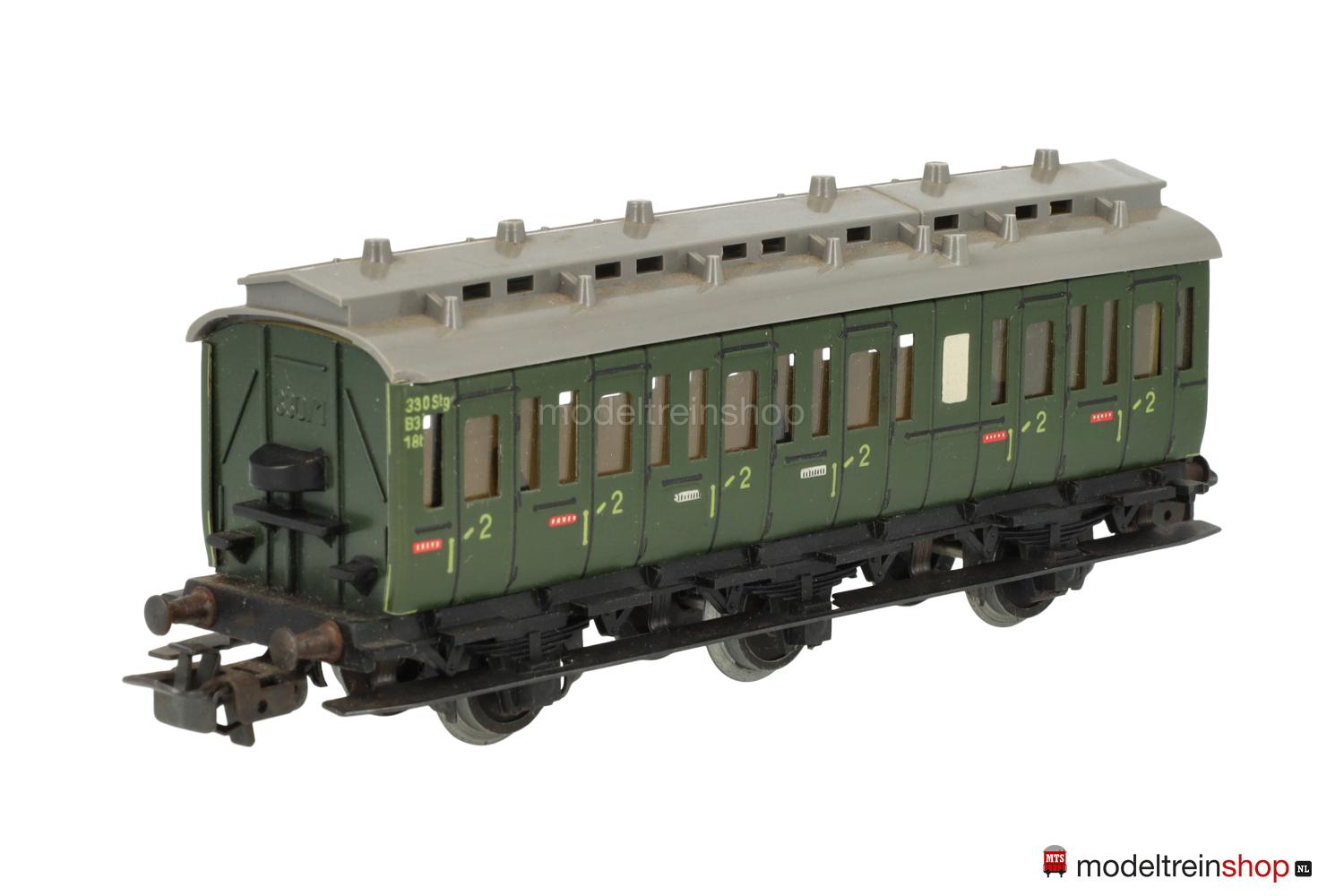 Schwarzes Blech-Untergestell, 3 Achsen. Grüner Aufbau ohne Bremserhaus, Seitenwände und Trittbretter aus Blech, graues Kunststoff-Dach mit Oberlichtern und Wendler-Lüftern (Farben in verschiedenen Nuancen ausgeliefert), eine Stirnwand mit erhabener Aufschrift “330/1”, rote und weiße “Raucher”- und “Nichtraucher”-Schilder, Fenster mit Cellonscheiben hinterlegt.