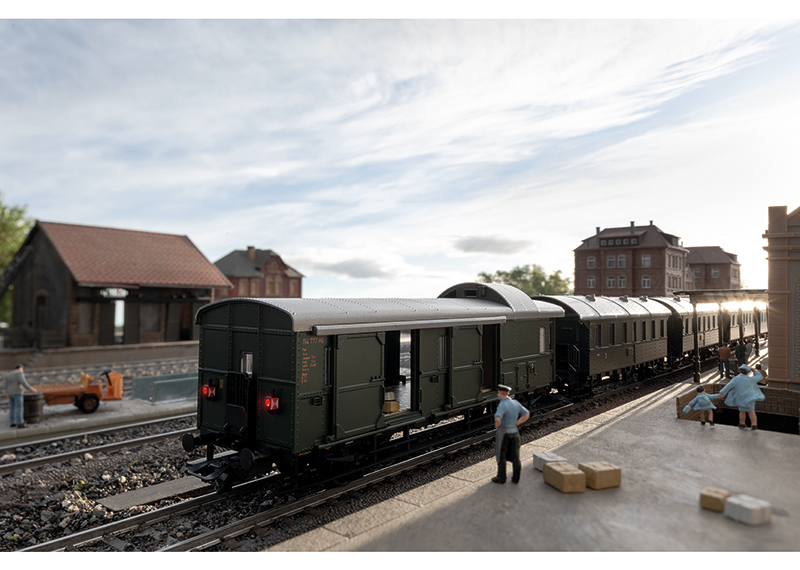 Alle wagens standaard met ingebouwde ledbinnenverlichting en stroomvoerende koppelingen. Via de ingebouwde stroomvoerende kortkoppelingen kan het hele treinstel via de stoomlocomotief 78 1001 (artikel 39781) van stroom worden voorzien. Binnenverlichting via de locomotief digitaal schakelbaar. Bagagewagen met ingebouwd staartlicht. figuurtjes van Preiser ingezet in de rijtuigen. Een ladingmeesterfiguur met pakketten wordt meegeleverd. Personenrijtuig met open eindbordessen en overgangen. Bagagewagen met bewegende schuifdeuren. Totale lengte over de buffers ca. 80,8 cm.