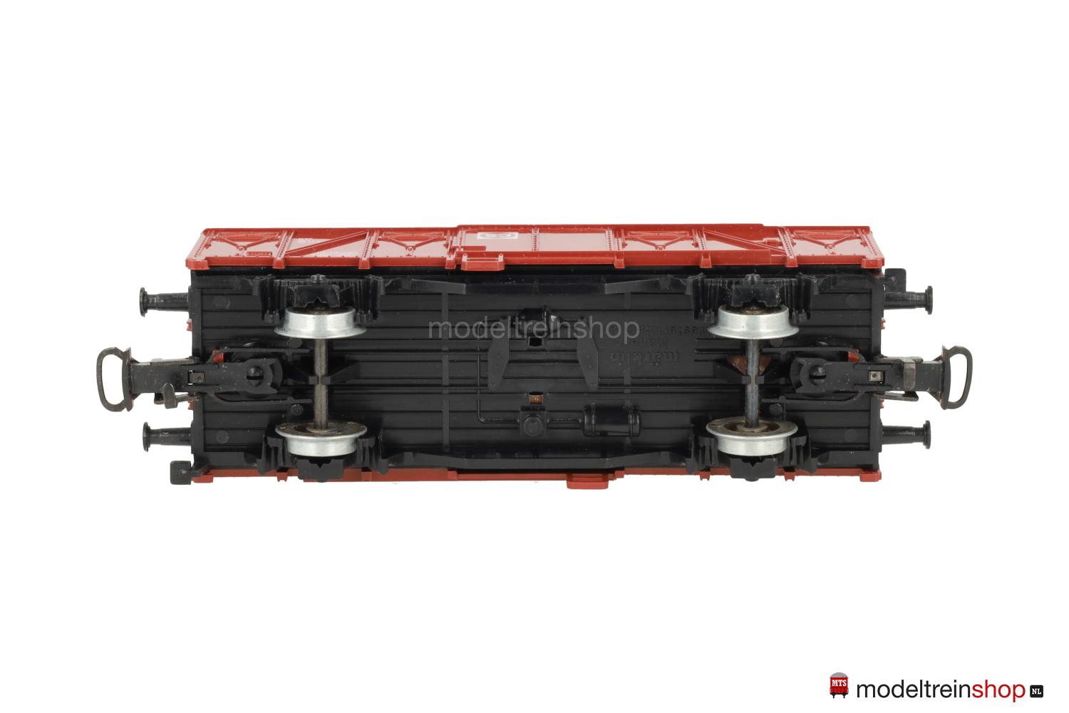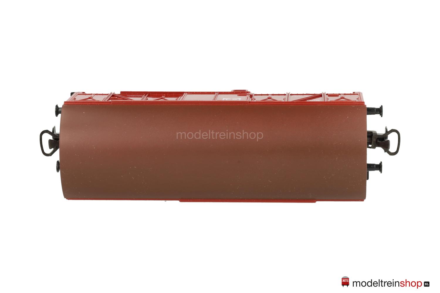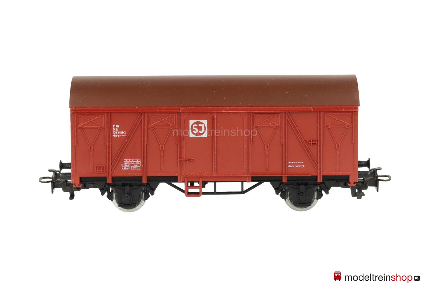 Schwarzes Kunststoff-Untergestell Typ B. Kunststoff-Aufbau: rotbrauner Wagenkasten, braunes Dach, weiße Aufschriften, Wagen-Nr.: 120 3 616-2, weiße SJ-Embleme.