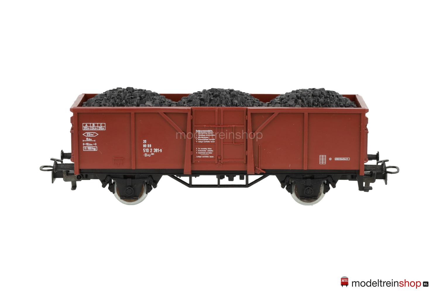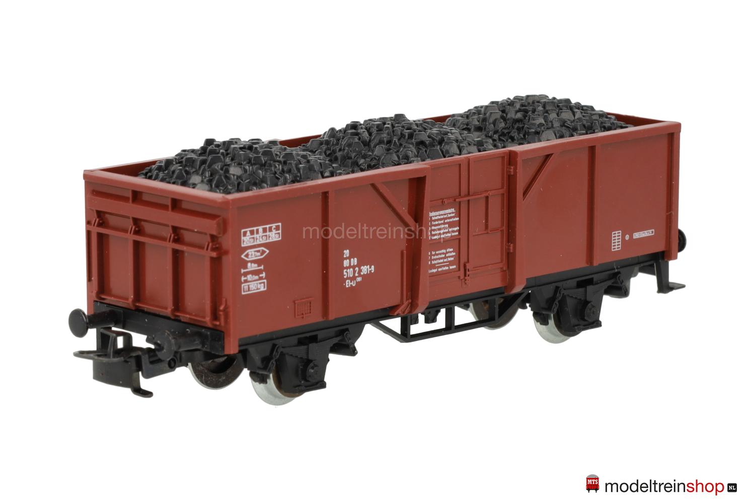 Untergestell Typ B. Rotbrauner Wagenkasten, Wagen-Nr.: 510 2 381-9, ohne Bremszeichen an den Wagenecken, beladen mit Steinkohle