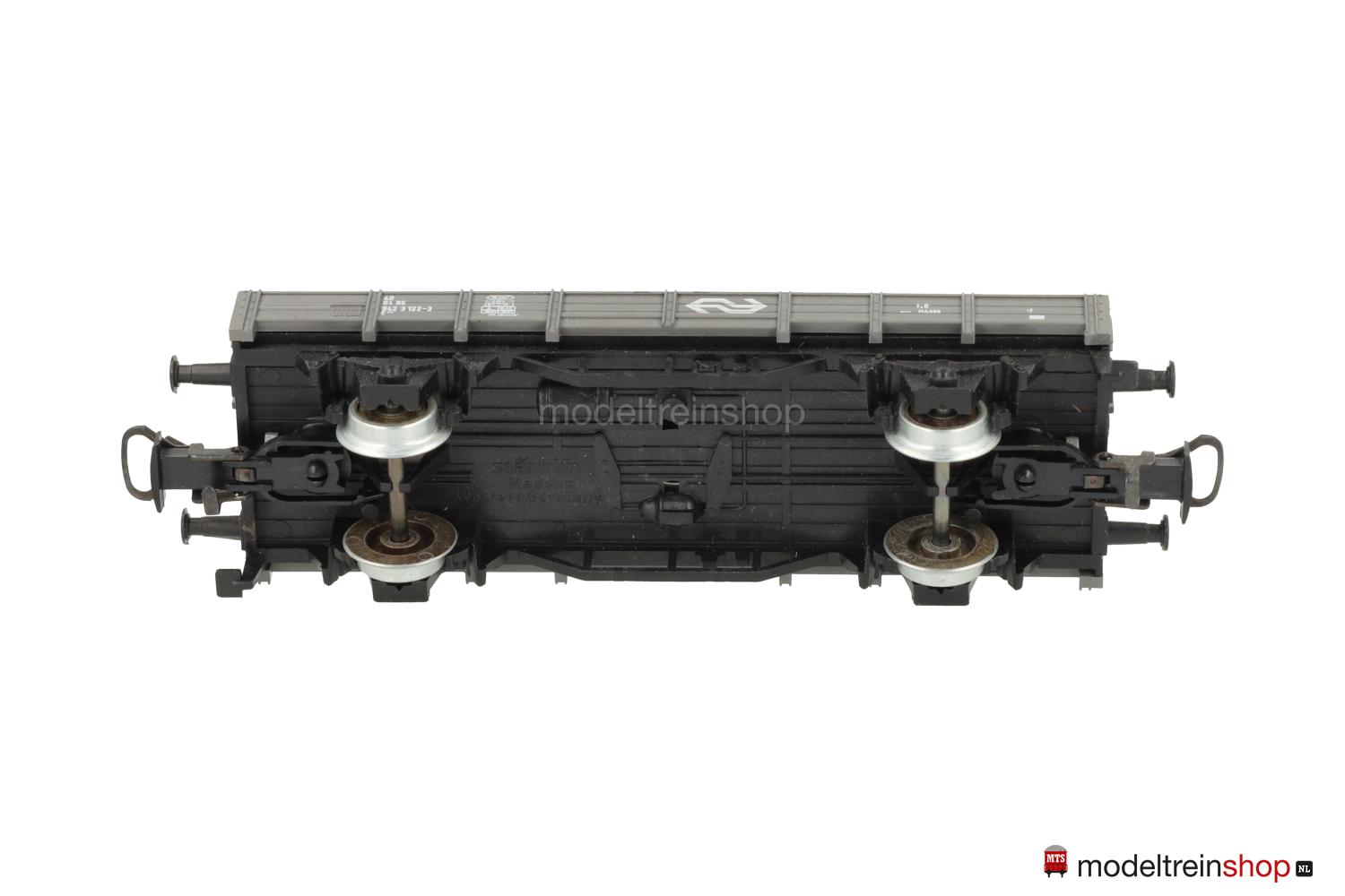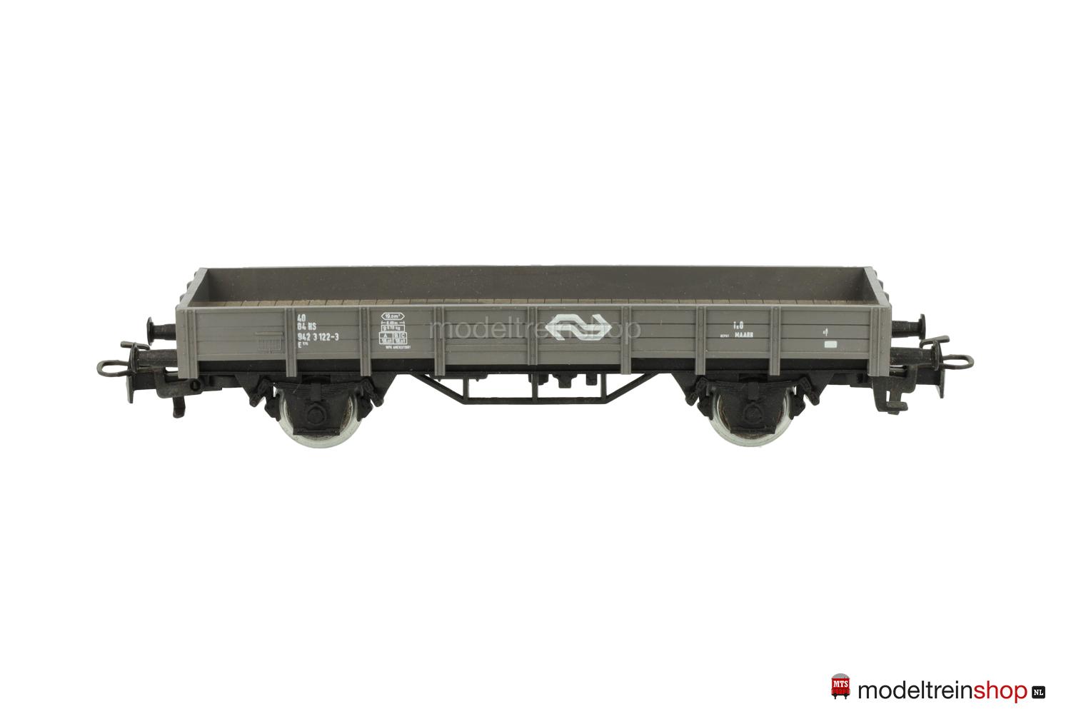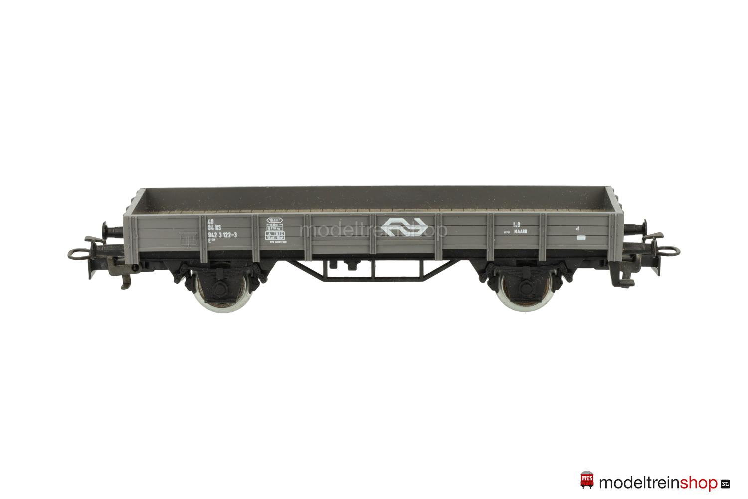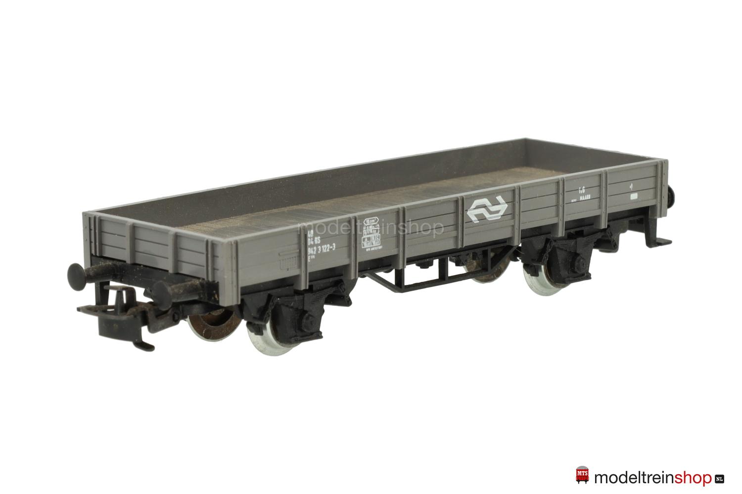 Schwarzes Kunststoff-Untergestell Typ B. Grauer Kunststoff-Aufbau, erhabene Zettelkästen, Aufschriften-Flächen ohne durchgehende Bretter, weiße Aufschriften, Wagen-Nr.: 942 3 122-3, weiße NS-Embleme.