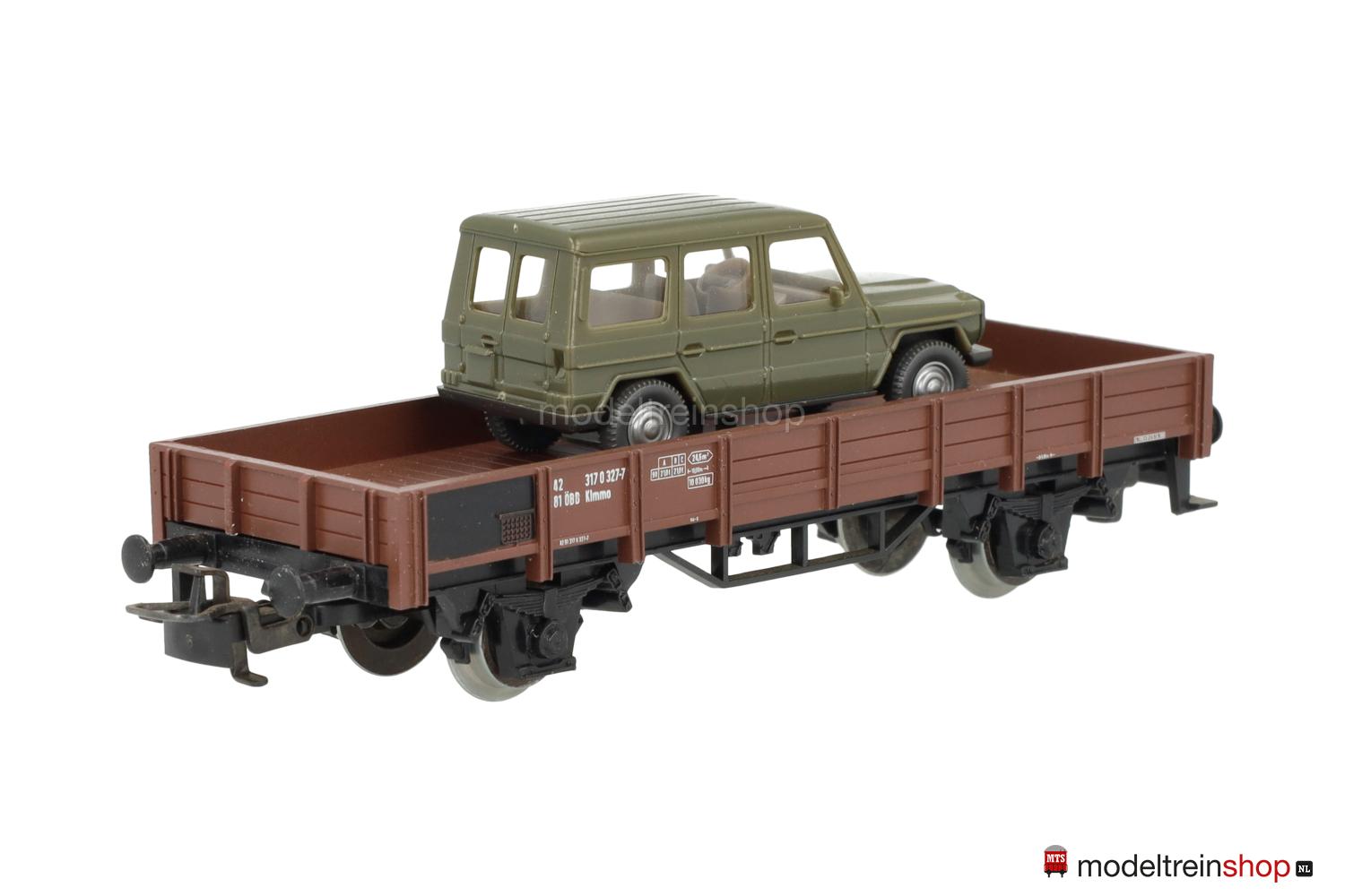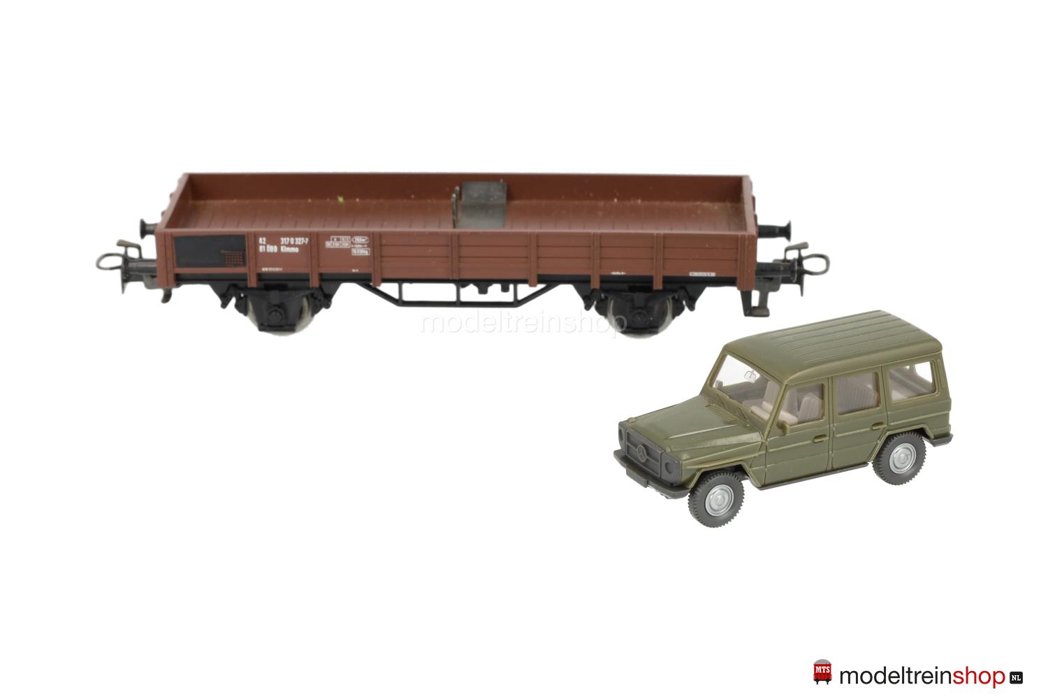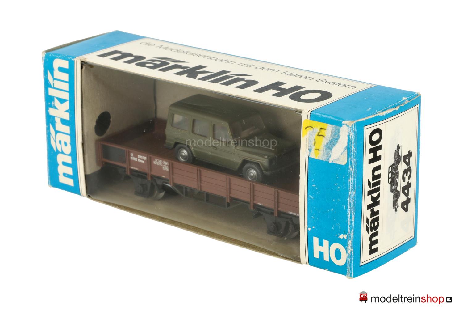 Marklin H0 4434 V1 Lageboordwagen met Mercedes Jeep - Modeltreinshop Marklin H0 4434 V1 Lageboordwa...