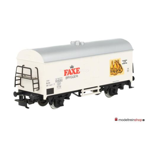 Schwarzes Kunststoff-Untergestell. Kunststoff-Aufbau: weißer Wagenkasten, silberfarbenes Dach, schwarze Aufschriften, Wagen-Nr.: 081 5 649-1, rote Aufschrift: “FAXE BRYGGERI”, mehrfarbige Werbebilder, an beiden Stirnseiten Bühne und Stiegen aus Metall.
