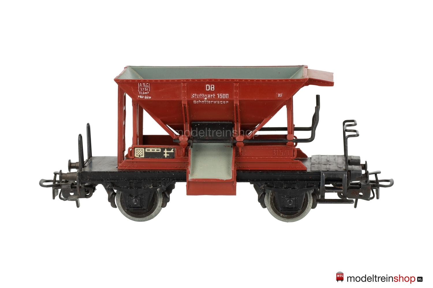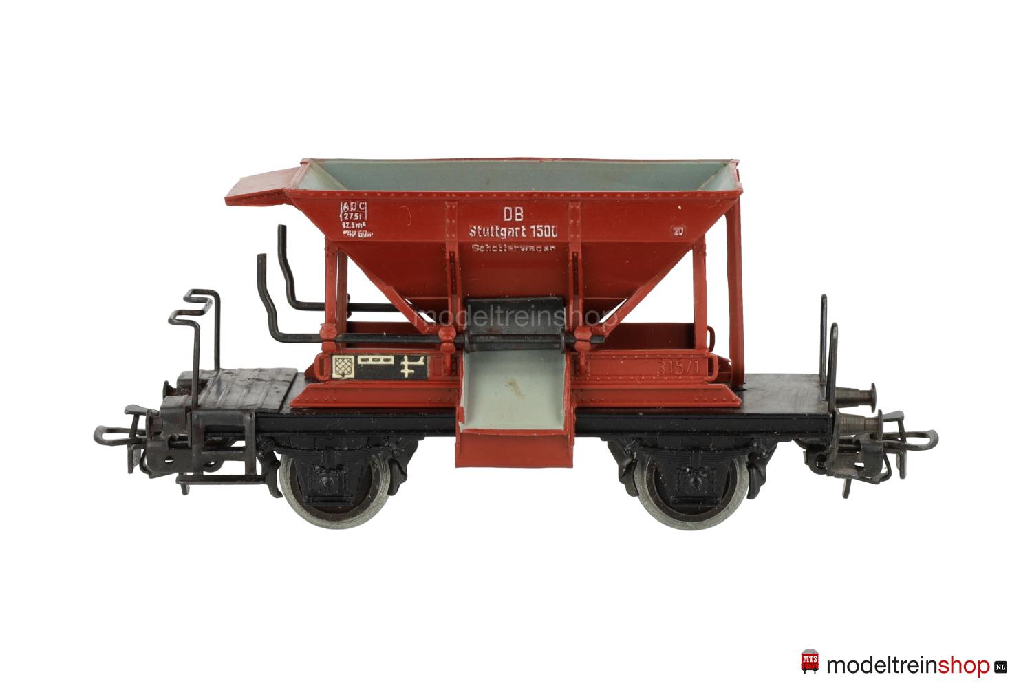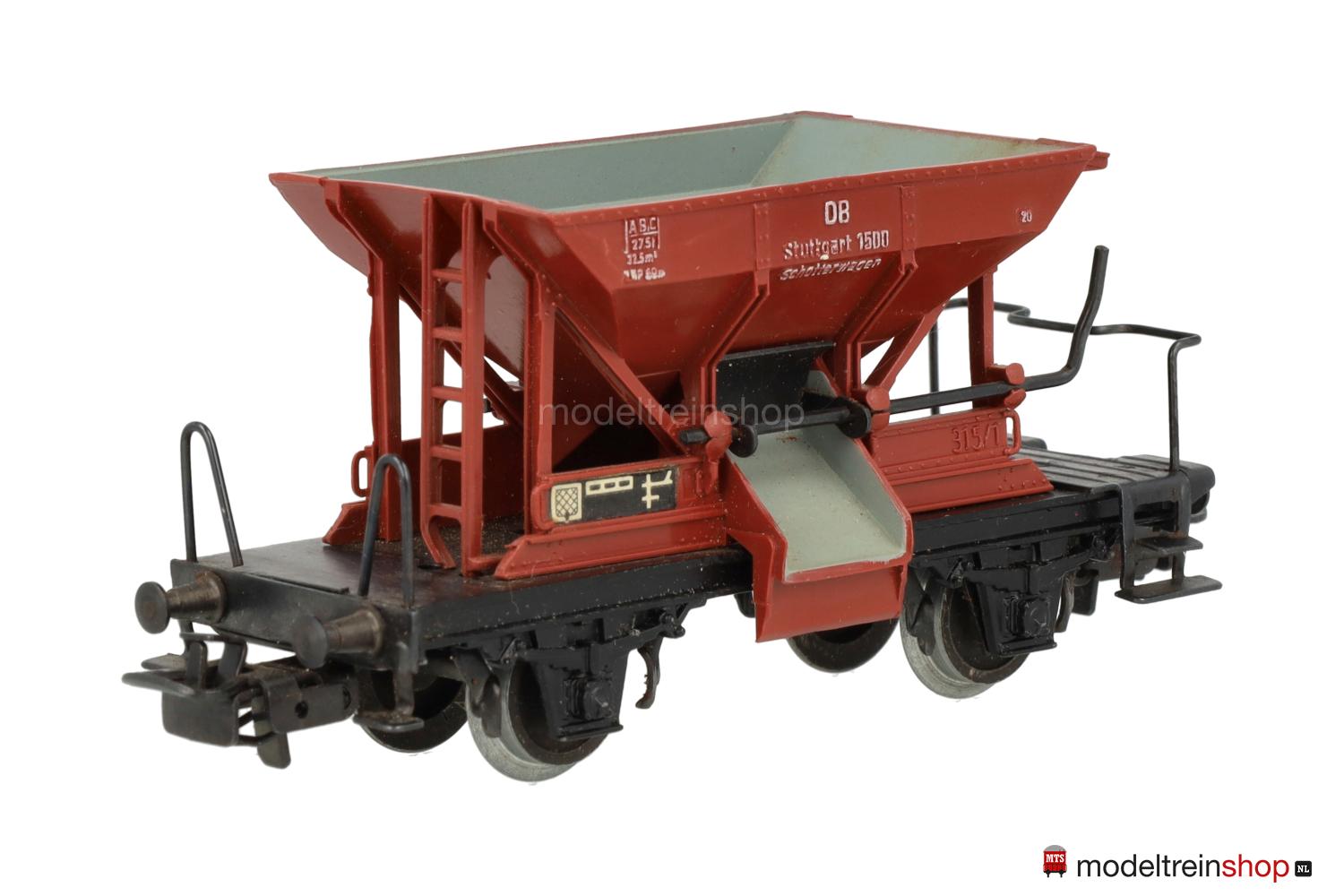 Guß-Untergestell ohne Rahmenbeschriftung. Brauner Kunststoff-Aufbau, erhabene weiße Aufschriften – u.a.: “Schotterwagen”, Wagen-Nr.: Stuttgart 1500, Anschriftenflächen (Zettelkasten und Übergabezettel-Feld) = Schiebebilder, an den Längsseiten erhabene Nr. “315/1”.