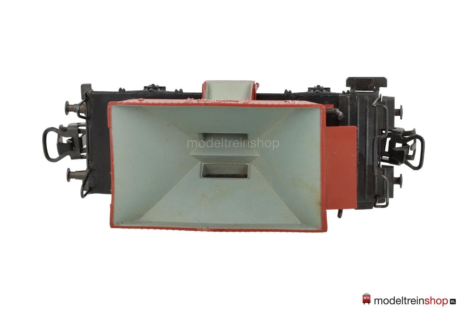 Schwarzes Untergestell. Eine Pufferbohle mit Trittstufen, Bremserbühne mit Trittbrettern und Bühnengeländer sowie angesteckten Griffstangen = Metall. Kunststoff-Aufbau – braun / rotbraun, grauer Laderaum, graue Rutschen, bewegliche Entladeklappen aus Metall.