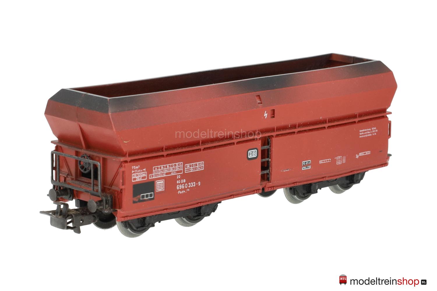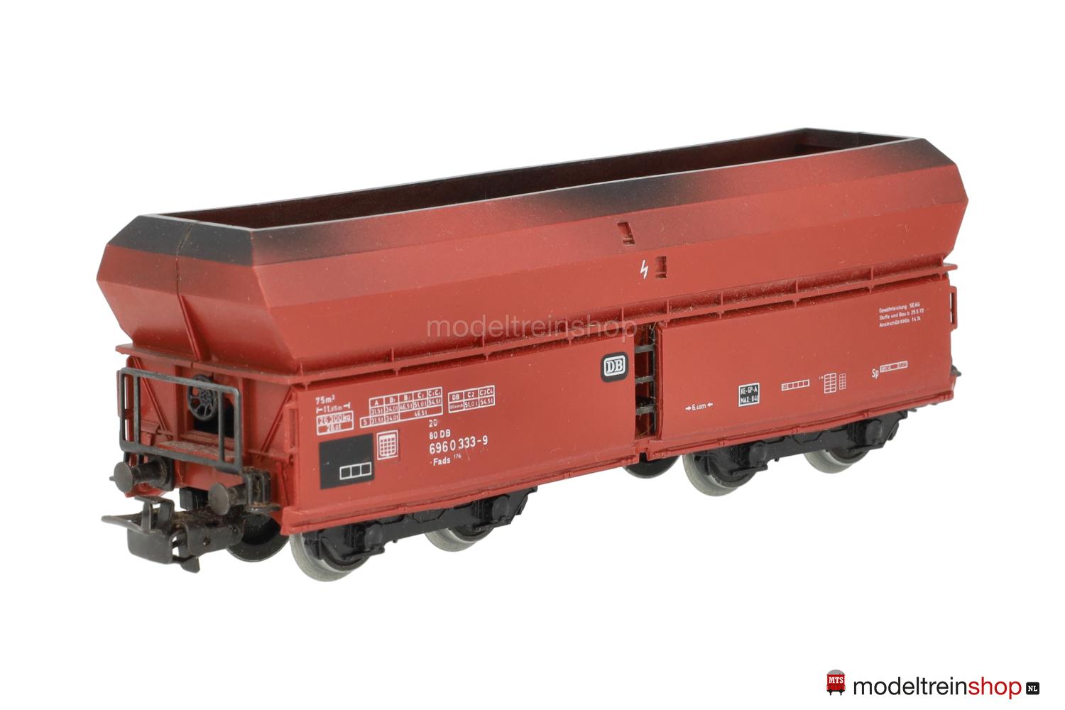 (Fads 176) Verbandsbauart-Drehgestelle Typ C-b. Rotbrauner Aufbau, geänderte Aufschriften, Wagen-Nr.: 696 0 333-9, weiße DB-Embleme auf schwarzem Grund, weißer Blitz neben der unteren Trittmulde, Bremszeichen an den Wagenecken.