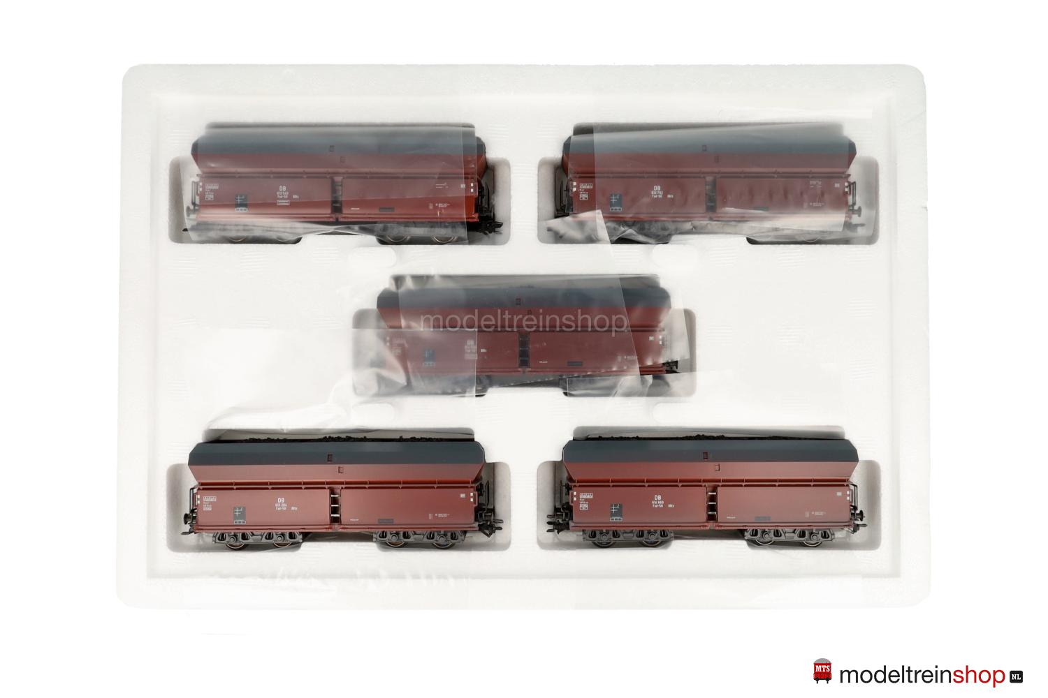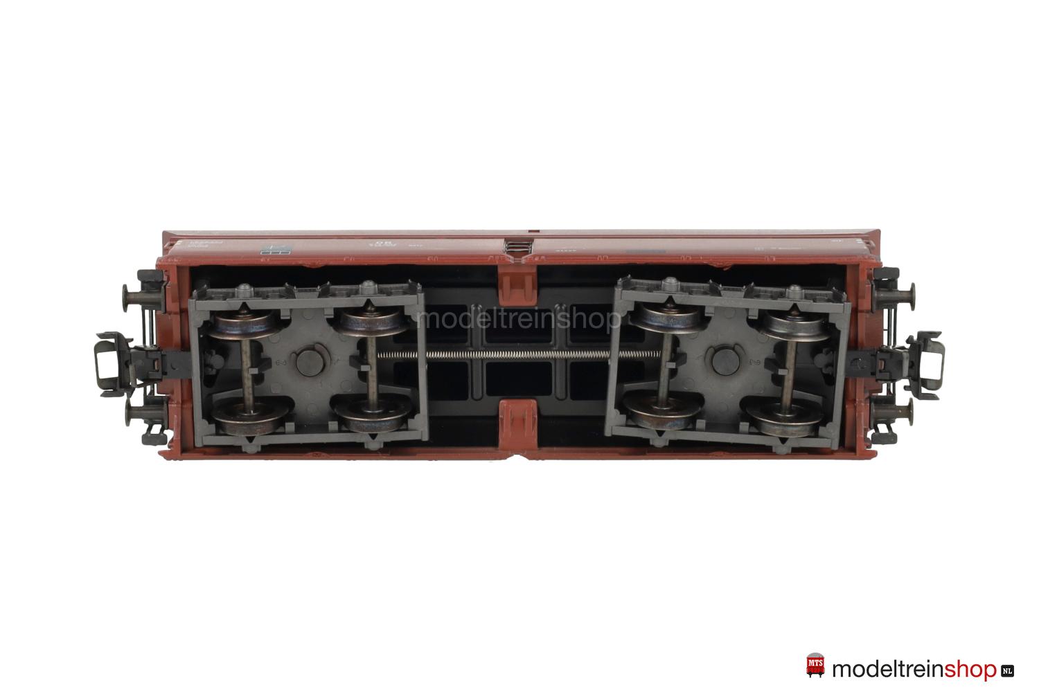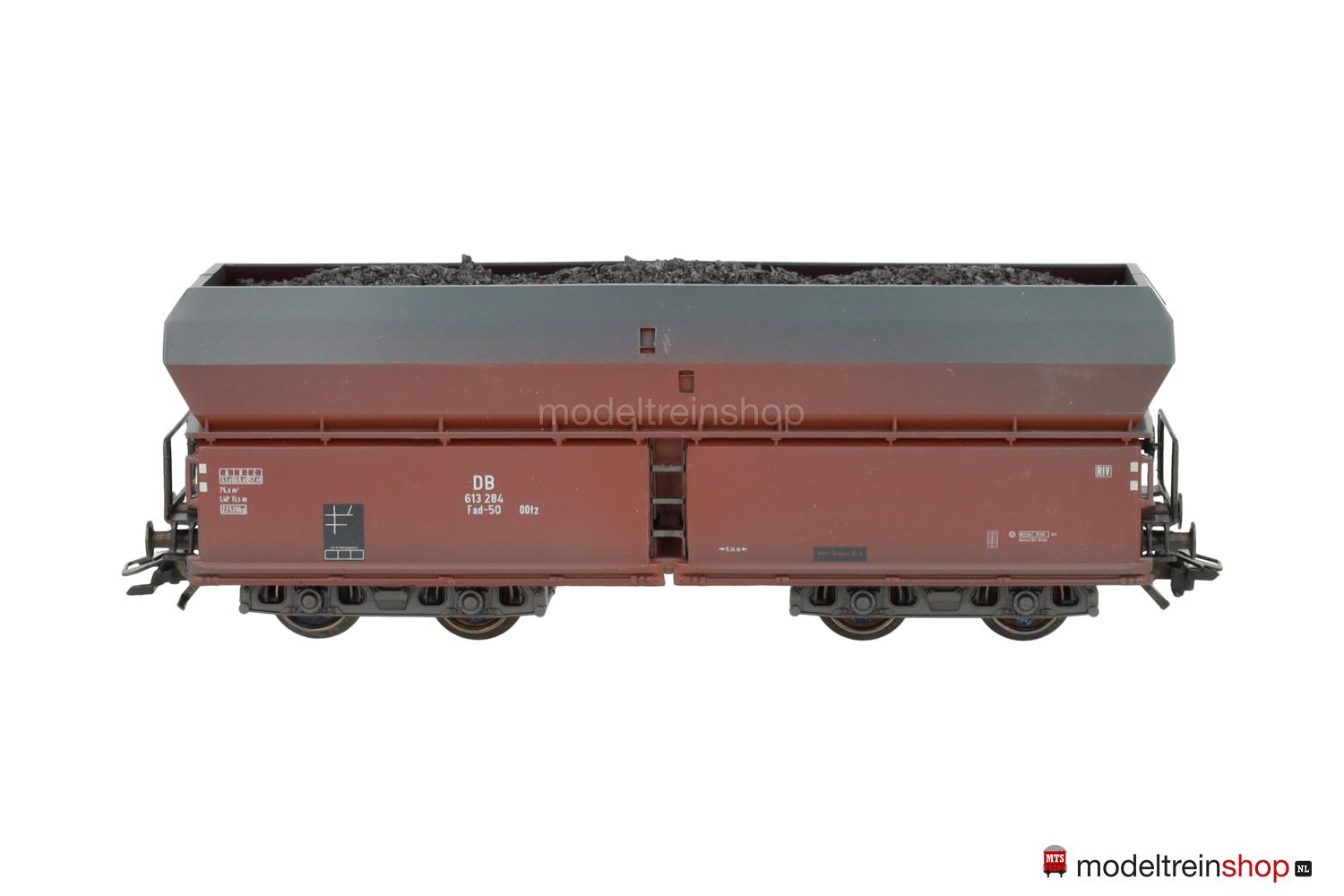 Schwarzes Blech-Untergestell, Bremserbühnen, Minden-Siegen-Drehgestelle (Typ E-c). Kunststoff-Aufbau – braun und gealtert, oberer Teil des Aufbaus dunkelgrau, weiße Aufschriften, an den Wagenecken angegossene Handgriffe, Metall-Leitern zwischen den Entladeklappen, beladen mit echtem Koks in maßstäblicher Körnung.