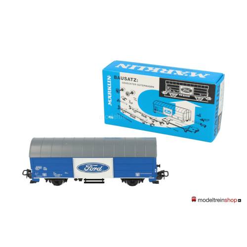 Schwarzes Blech/Kunststoff-Untergestell. Kunststoff-Aufbau: blauer Wagenkasten, graues Dach. Wagen-Nr.: 022 0 595-2, weiße Aufschriften, weiße Türen mit blauem Ford-Emblem.