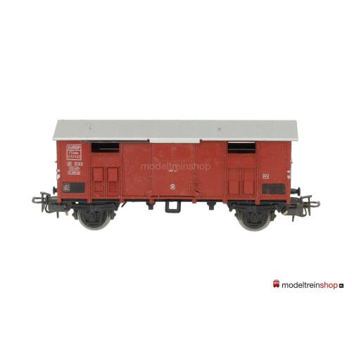 Schwarzes Blech-/Kunststoff-Untergestell. Kunststoff-Wagenkasten mit vergitterten Lüfter-Öffnungen, Satteldach aus Blech, Wagen-Nr.: 117433, unbewegliche Schiebetüren, erhabene Bremszeichen an den Wagenecken.