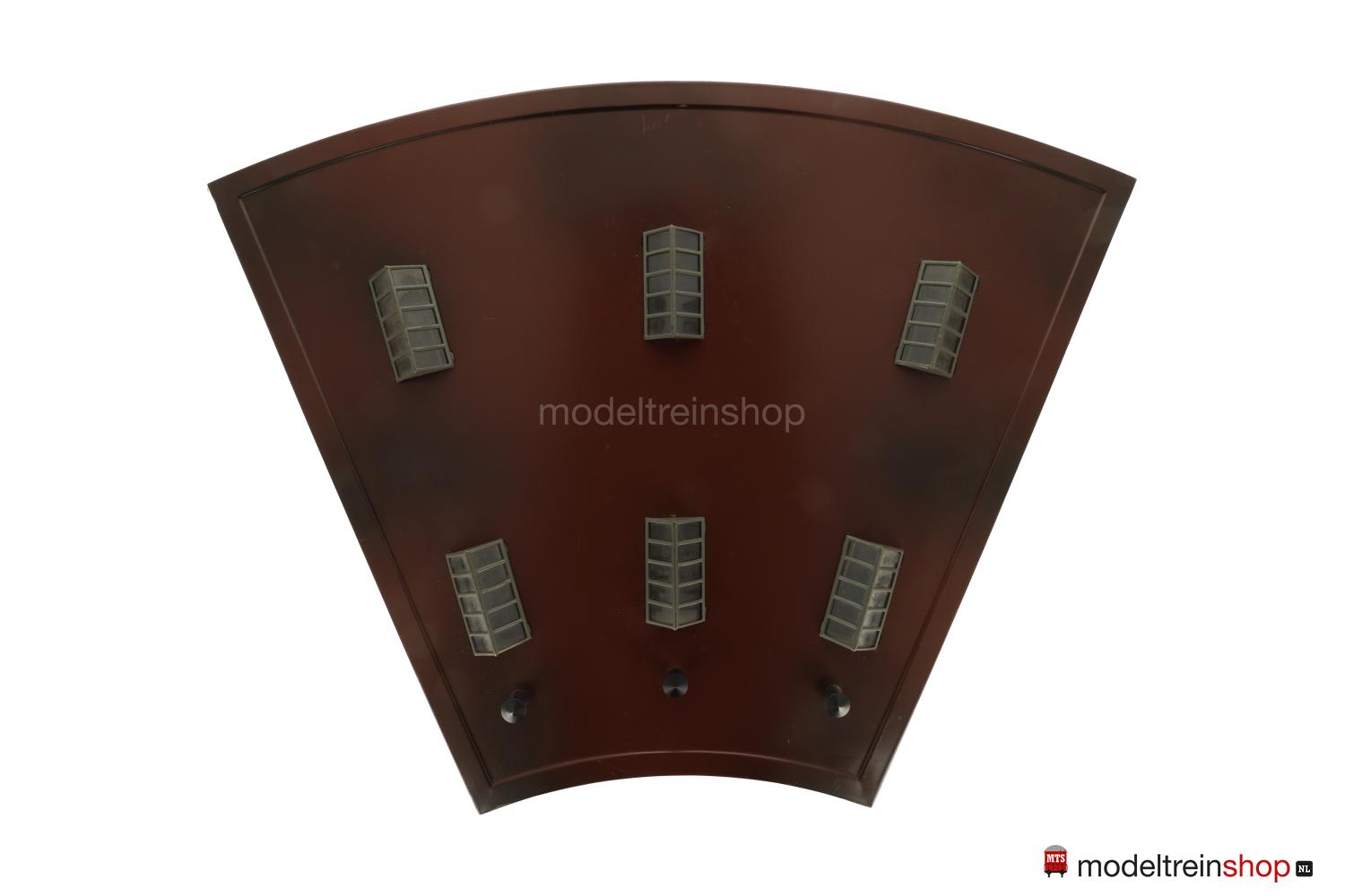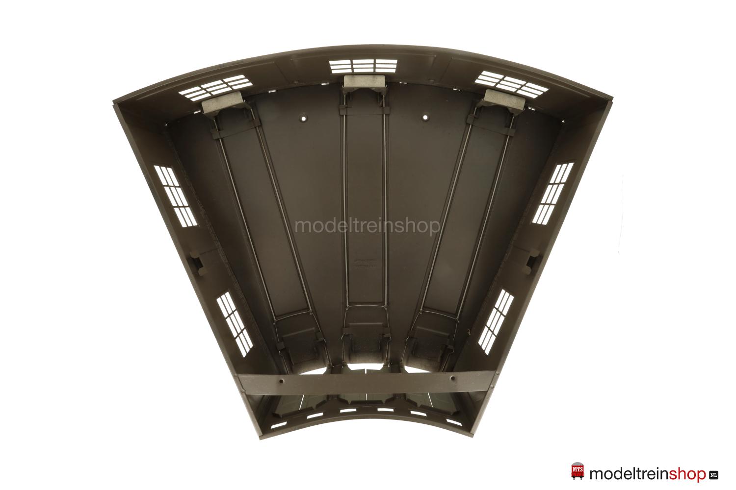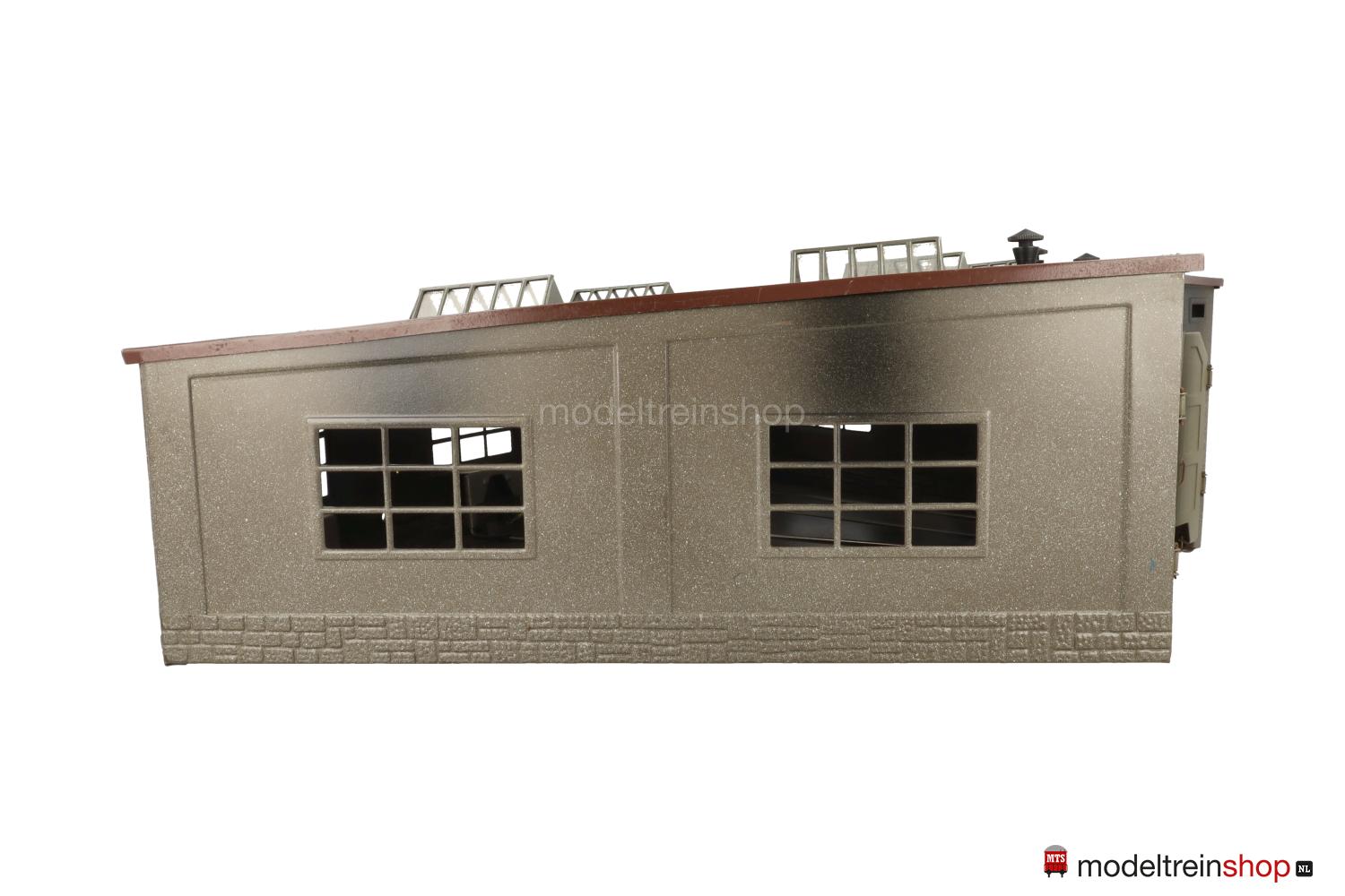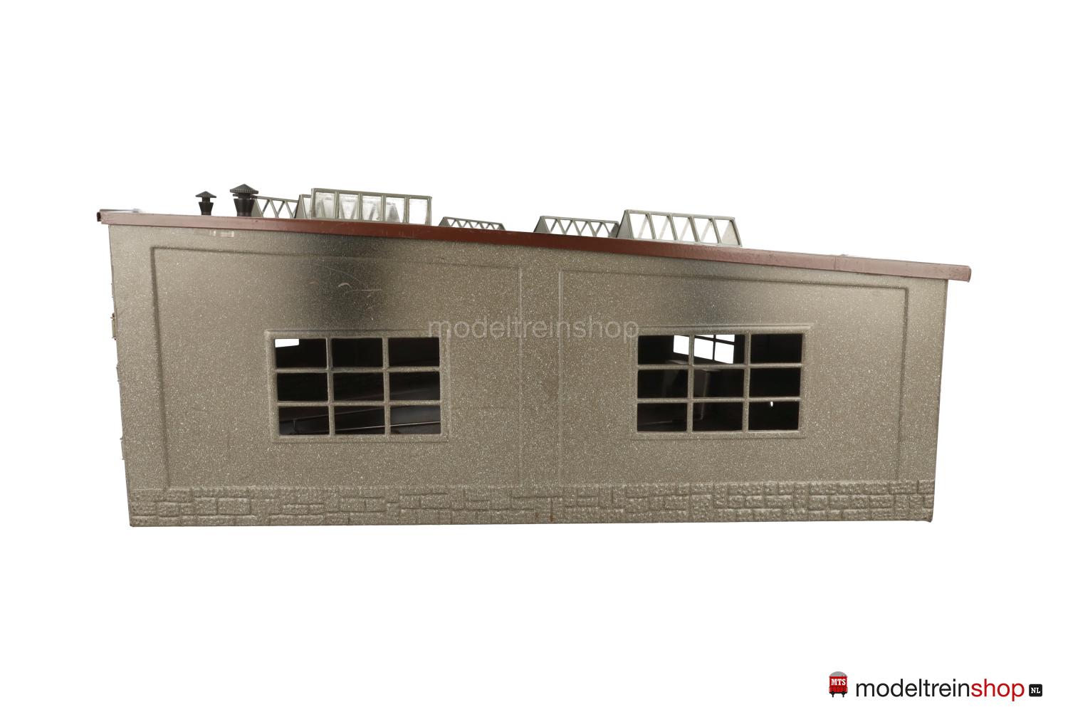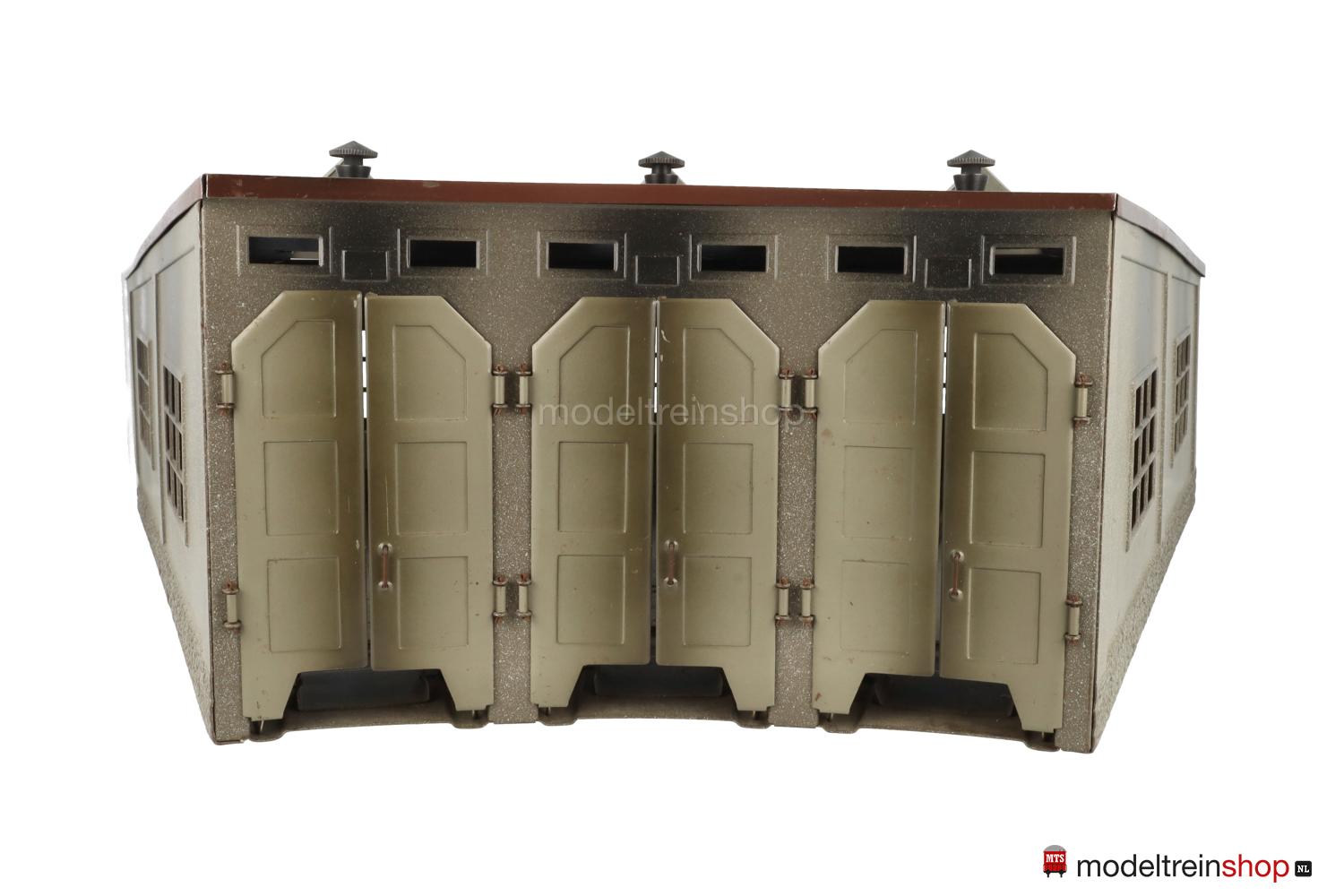 (Metall) Dreiständig, drei automatisch schließende Tore, auf dem Dach Oberlichtaufsätze und Rauchabzüge, Dach abnehmbar nach Lösen der beiden äußeren Rauchabzüge.