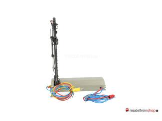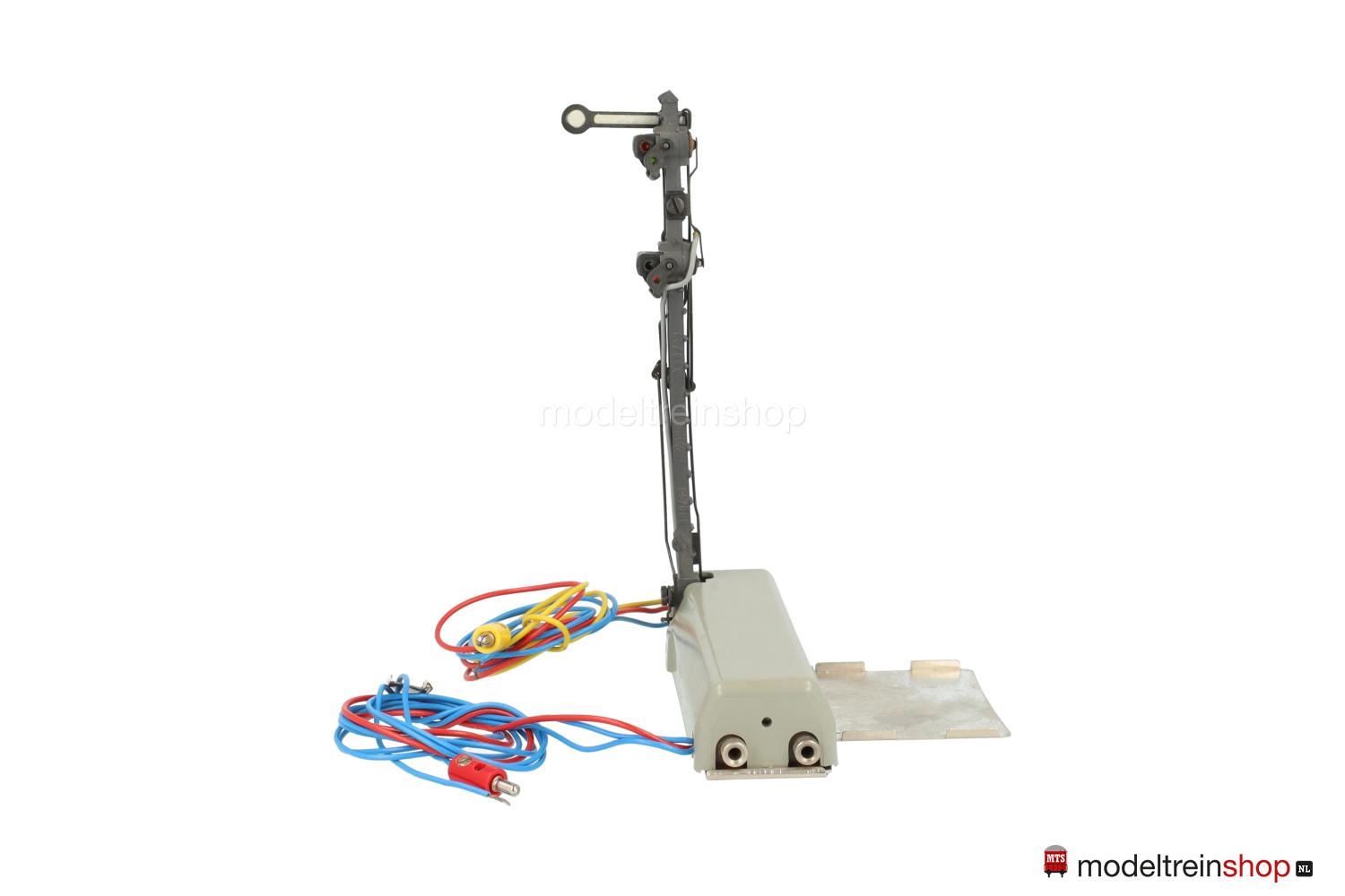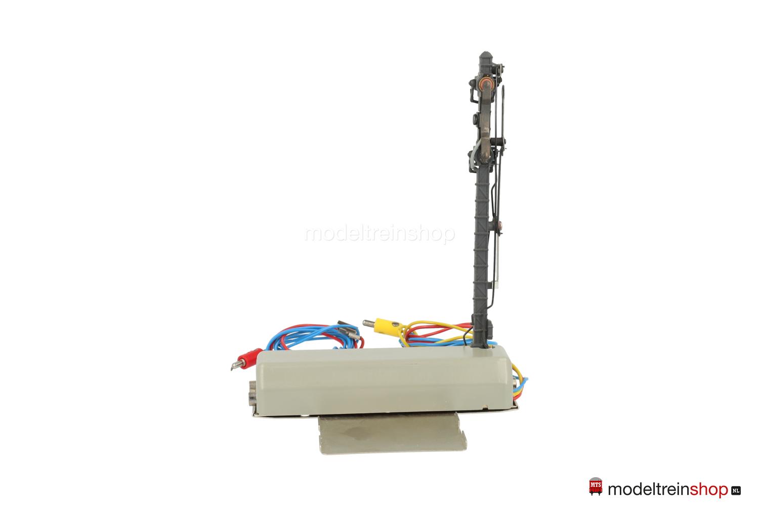 Grijze aandrijfbak – afsluitbaar op de baan met plaatwerkplaat, grijze mast met rood / wit mastbord, driespoel aandrijving.