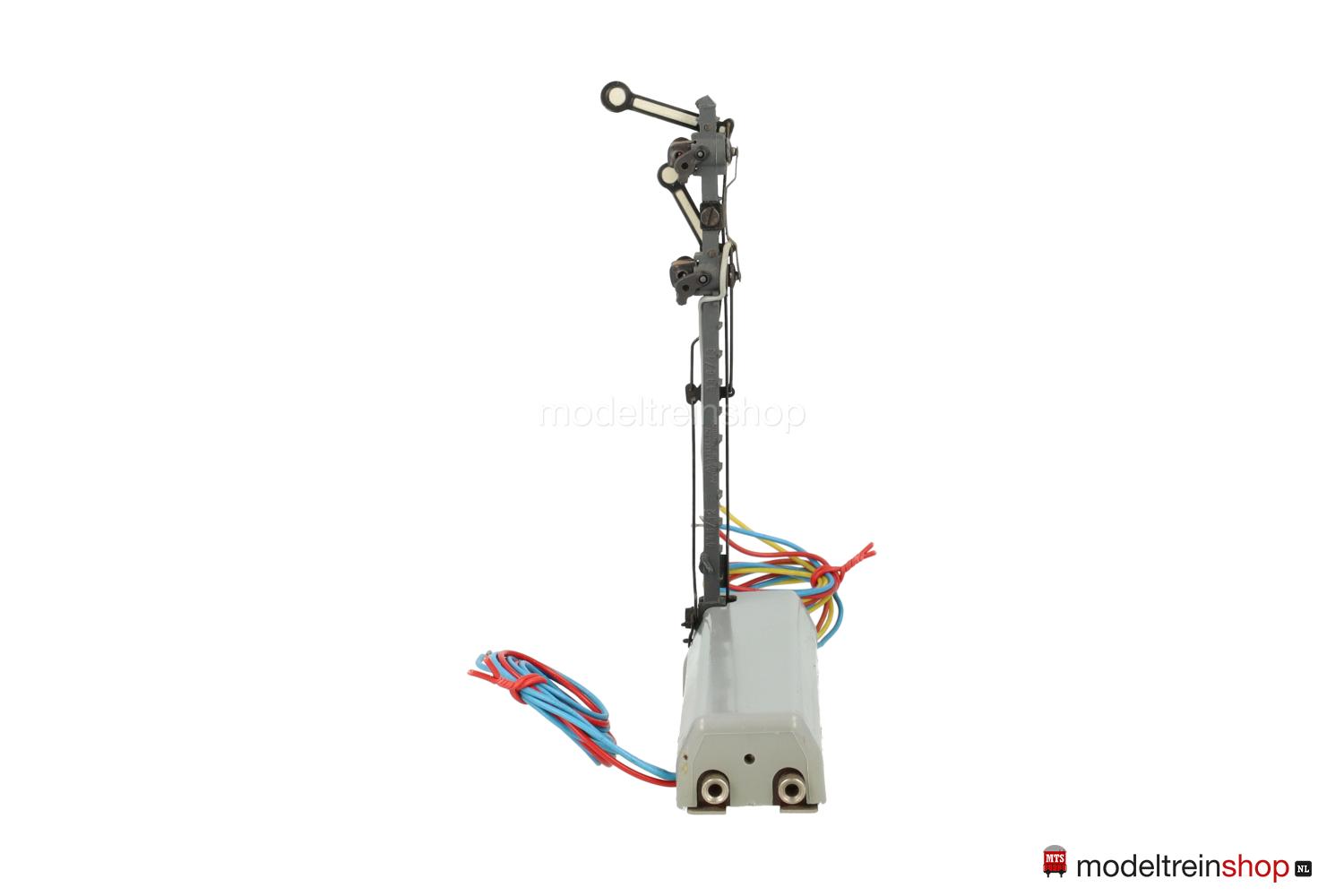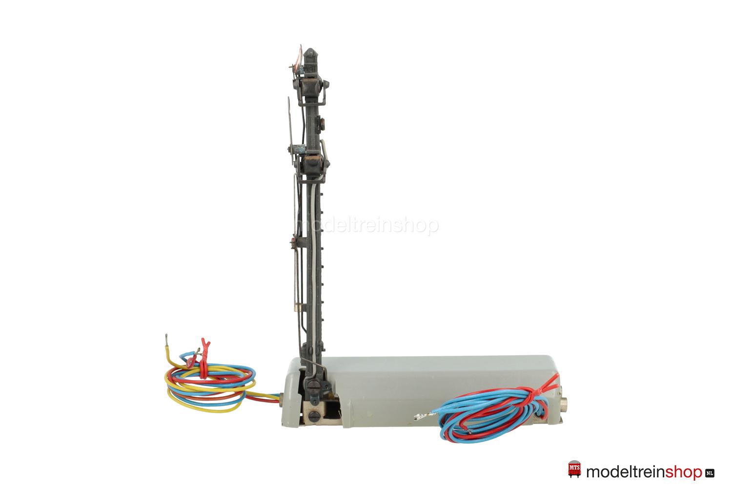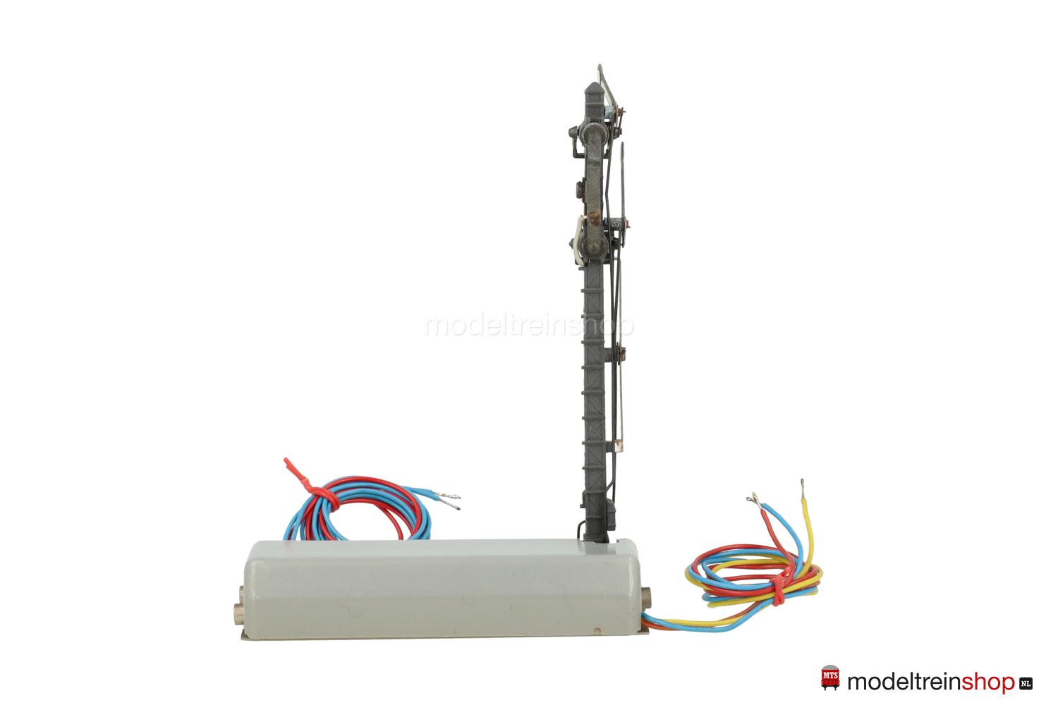 Grijze aandrijfbak – afsluitbaar op de baan met plaatwerkplaat, grijze mast met rood / wit mastbord, driespoel aandrijving.