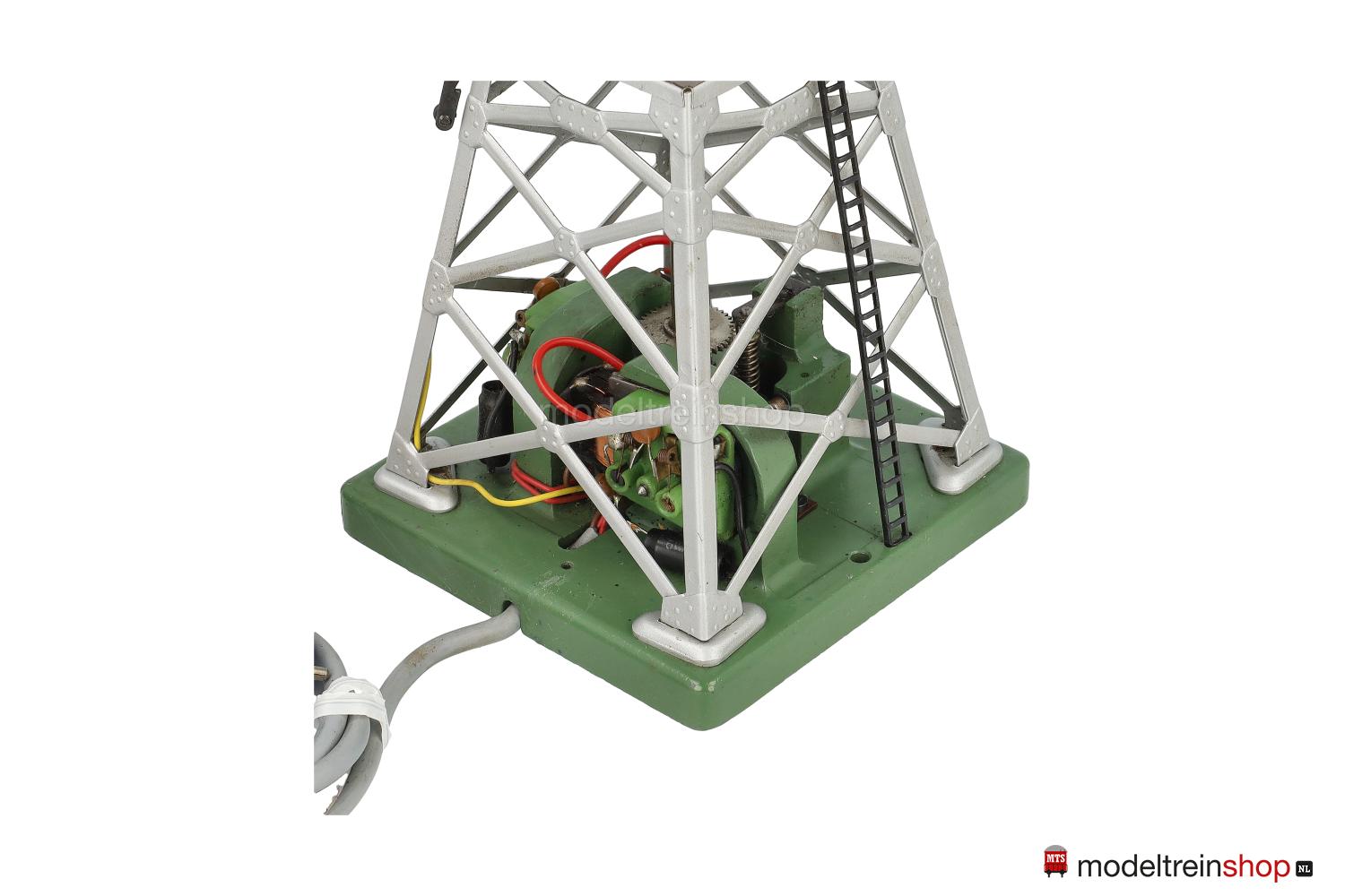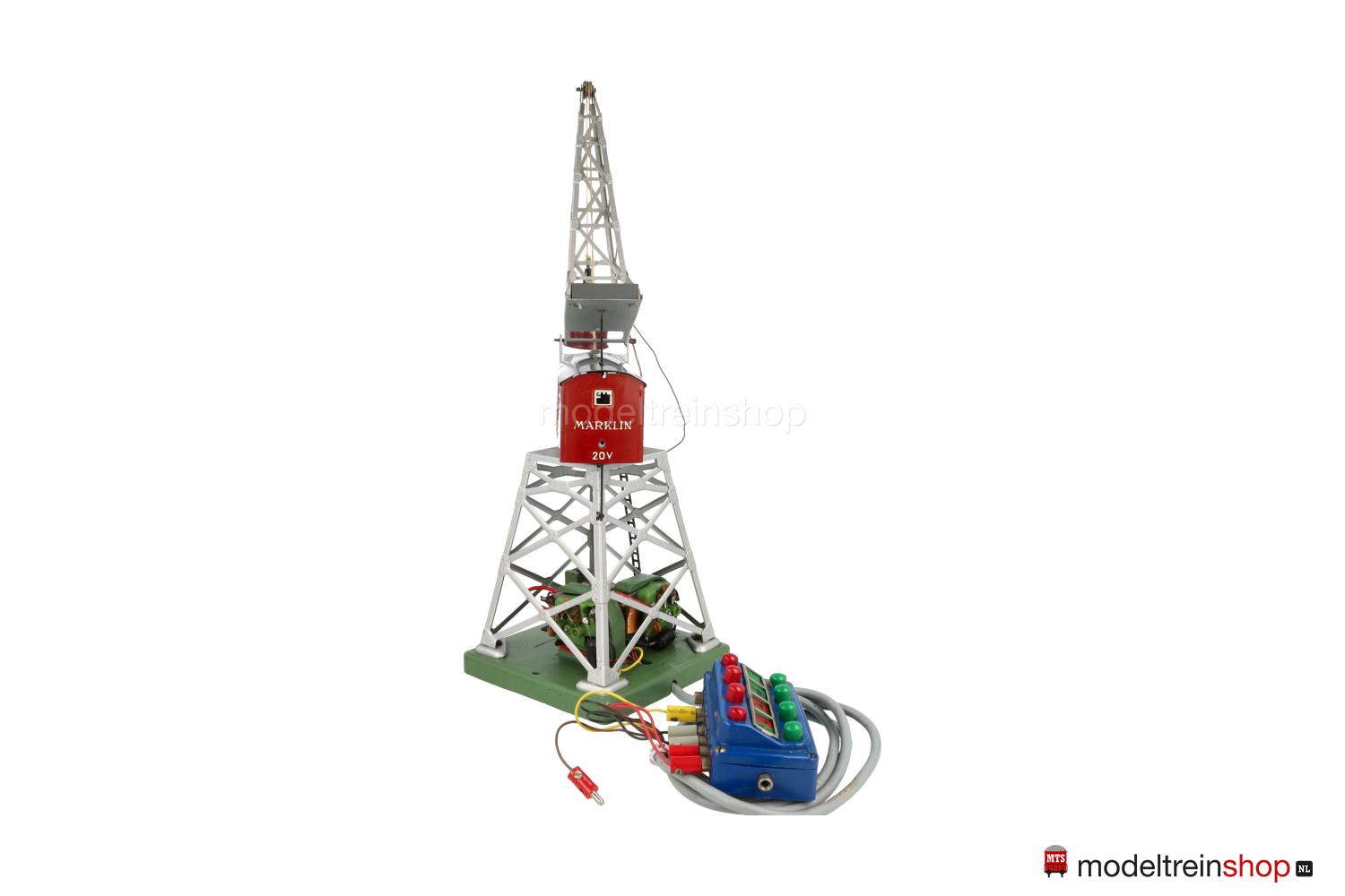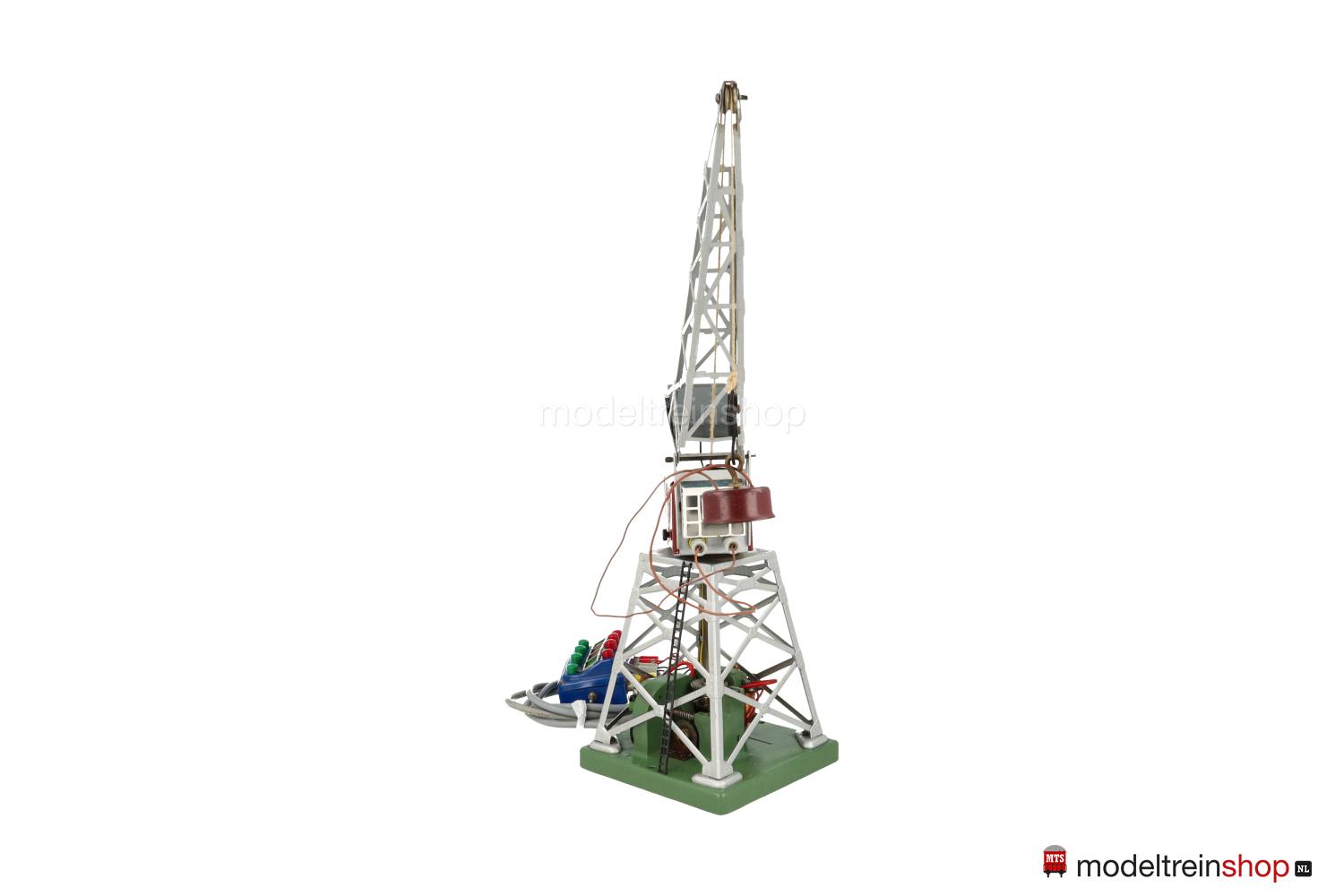 Mit elektrisch betätigtem Hebemagnet, ein Motor für die Drehbewegung des Auslegers, ein Motor zum Heben und Senken des Lasthakens bzw. Hebemagnets. Ausleger von Hand verstellbar. Guß-Sockelplatte (9 x 9 cm) mit den integrierten und fernbedienbaren Motoren. Kran in genieteter Gitterkonstruktion, Kranhaus mit Innenbeleuchtung, Gegengewicht. Schwenkbereich 360°.